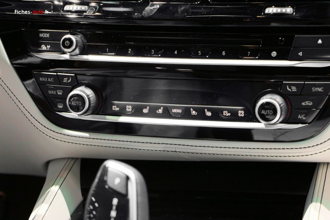 (Source BMW Octobre 2017) Applications chromées au niveau des projecteurs antibrouillard à LED / Baguettes de seuil chromées avec inscription BMW à l'avant et à l'arrière / Bouclier avant avec technologie Rideaux d'Air "Air Curtains" / Construction allégée intelligente "BMW Ef f icientLightweight" légère aluminium/acier / Clignotants blancs LED intégrés dans les boitiers des rétroviseurs extérieurs / Feux stop dynamique à technologie LED / Inserts décoratifs Oxyde Silver Dark mat avec baguette d'accentuation chrome brillant perlé / Jantes en alliage léger 17'' style 618 à rayons en V / Projecteurs antibrouillard à LED / Projecteurs LED, inclut quatre anneaux lumineux pour fonction d’éclairage diurne et réglage de la portée des projecteurs / Rails de toit Noir mat (uniquement sur BMW Série 5 Touring) / Rétroviseurs extérieurs couleur carrosserie à réglage électrique asphériques et dégivrants / Sellerie cuir Dakota (à partir des motorisations 30i/ 30d/30e) / Volant sport gainé cuir / Alarme antivol / Allumage automatique des projecteurs / Appel d'Urgence Intelligent / Fixations ISOFIX pour sièges enfant à l'arrière / Boîte de vitesses automatique à 8 rapports (sauf sur 520d) / Calandre avec double barreaux mobiles "Active Air Stream" pour un aérodynamisme optimal / Contrôle Dynamique de la Traction DTC et Contrôle Dynamique de Stabilité DSC / Détecteur de pluie / Direction à assistance électrique / Eclairage de bienvenue actionnable par télécommande / Fonction d'arrêt et de redémarrage automatique du moteur / Fonction "Follow me Home" / Frein de parking électrique avec fonction "Automatic Hold" / Indicateur de maintenance, indicateur de consommation moyenne / Mesure individuelle de pression des pneumatiques / Détecteur de somnolence / Rétroviseurs extérieurs rabattables électriquement et électrochrome côté conducteur / Rétroviseur intérieur électrochrome / Sélecteur de mode de conduite / Système de récupération de l'énergie au freinage / Technologie BMW TwinPower Turbo avec injection / Triangle de présignalisation avec kit de premiers secours / 3 appuis-tête arrière, 2 réglables en hauteur / Accoudoir central arrière / Autoradio BMW Professional avec lecteur CD compatible MP3 / Banquette arrière rabattable 40/20/40 / Boite à gants verrouillable (et réfrigérée sur BMW Série 5 Touring) / Climatisation automatique 2 zones / Ecran de contrôle central couleur 8,8'' à affichage 16/9 avec inserts chromés sur les côtés / Lève-vitre AV/AR électrique, fonction péage/confort/anticoincement / Pare-soleil avec miroir de courtoisie éclairé / Interface Bluetooth et port USB / Prise 12V (Accoudoir avant et arrière, vide-poches avant + compartiment à bagages côté droit sur BMW Série 5 Touring) / Bouton de démarrage Start/Stop sans manipulation de la clé / Navigation multimédia Business avec "Controller" iDrive / Ordinateur de bord avec indicateur de température extérieure / Prise AUX-IN / Radars de stationnement PDC avant et arrière / Régulateur de vitesse avec fonction freinage / Clés radiocommandées à mémorisation automatique des réglages "Personal Profile" / Services ConnectedDrive (3 ans d'utilisation) / Tapis de sol en velours / Vitre de hayon à ouverture séparée (uniquement sur BMW Série 5 Touring) / OEillets d'arrimage dans le coffre à bagages (uniquement sur BMW Série 5 Touring) / Cache-bagages à enrouleur, dissimulable sous le plancher de coffre (uniquement sur BMW Série 5 Touring)