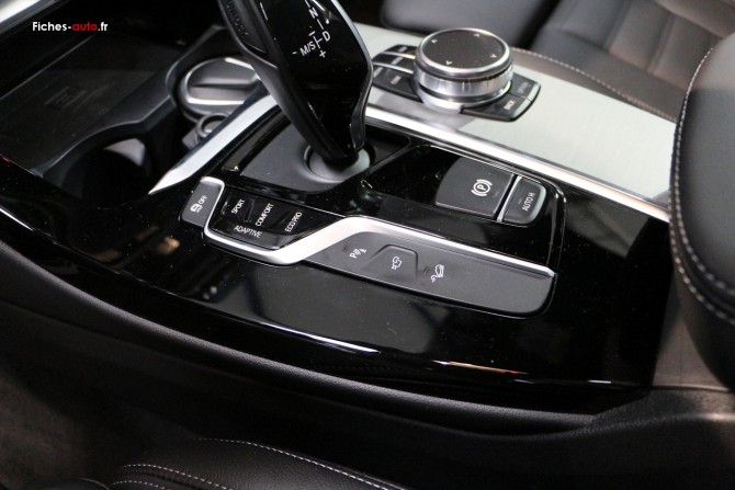 A partir de 74 800 euros : Shadow Line brillant BMW Individual // Enjoliveurs d’échappement de forme trapézoïdale à gauche et à droite, en chrome noir // Jantes en alliage léger 20’’ M style 699 M à rayons doubles avec pneumatiques mixtes // Pack aérodynamique M // Inserts décoratifs Aluminium Rhombicle avec baguette d’accentuation chrome brillant perlé // Ciel de pavillon «Anthrazit» // Seuils de porte avec désignation «X3 M40i» ou «X3 M40d» // Volant M gainé cuir // Pack Advanced Full LED // Feux de route anti-éblouissement // Sellerie Tissu/Cuir «Vernasca» Schwarz avec surpiqûres contrastantes Bleue // Tableau de bord en Sensatec // Rails de toit noir brillant Shadow line BMW Individual // Boîte de vitesses automatique Sport à 8 rapports avec Steptronic et palettes au volant // Différentiel autobloquant M Sport // Direction DirectDrive à démultiplication variable // Suspension DirectDrive // Freins M Sport // Éclairage d’ambiance // Sièges Advanced pour conducteur et passager avant // Sièges avant électriques à mémoires conducteur // Pack BMW ConnectedDrive // Système de manoeuvres entièrement automatiques «Park Assist»