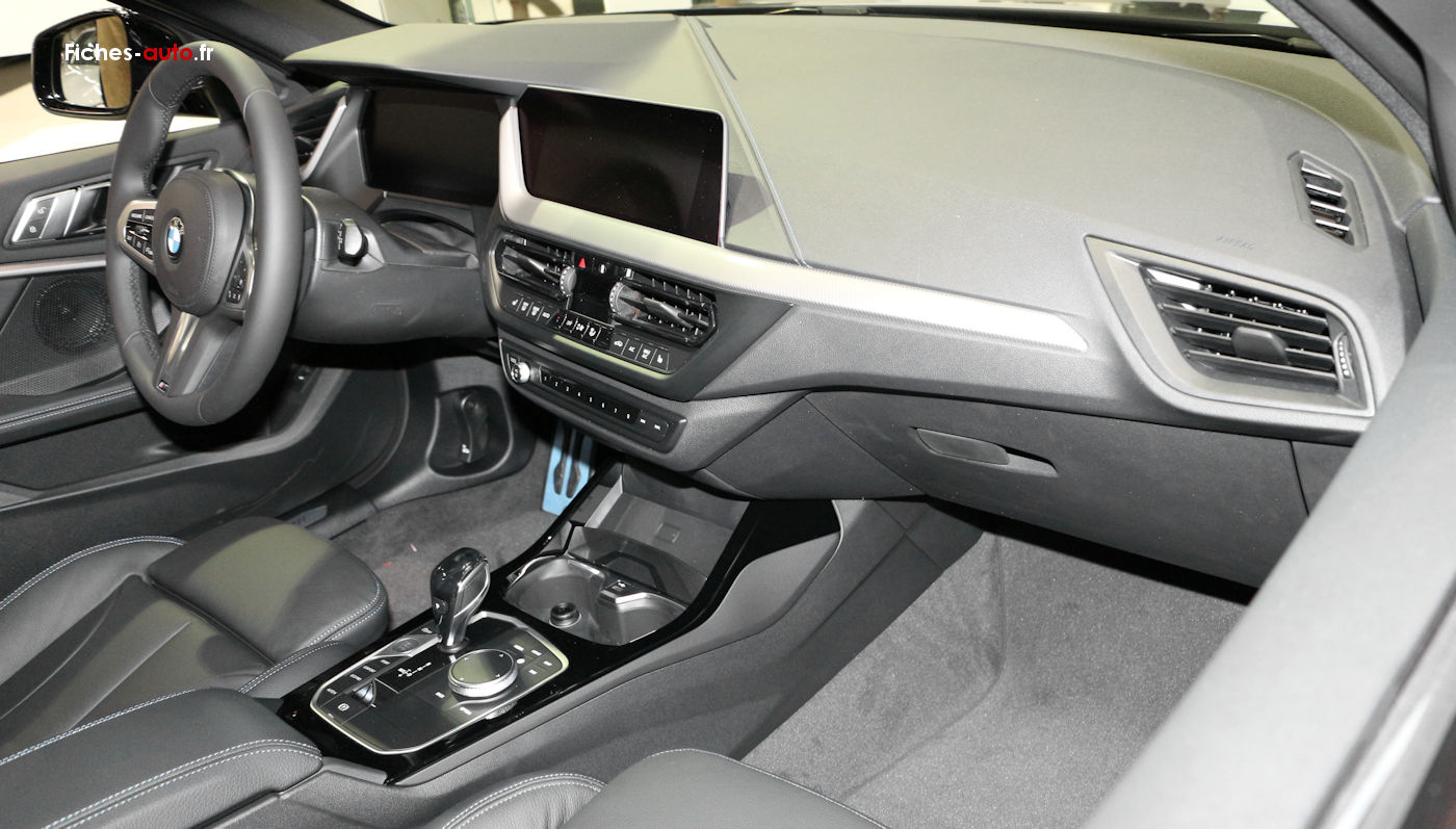 A partir de 32 950 euros : Ciel de pavillon anthracite // Inserts décoratifs “Illuminated Boston” // Jantes alliage 18” style 819 M bicolores // Ligne M Sport- Badge “M” sur les ailes- Calandre en Aluminium satiné-Clés spécifiques avec couleurs “M”- Contour de calandre an Aluminium satiné- Kit aérodynamique M-Levier de vitesse raccourci M(BVM uniquement)-Pédalier spécifique M-Seuils de portes en Aluminium avecinscription “M”-Tapis de sol spécifique M // Rétroviseurs extérieurs rabattablesélectriquement // Sellerie Tissu/Similicuir-Sensatec Schwarz // Shadow Line brillant // Volant M gainé cuirFONCTIONNALITÉS // Direction DirectDrive M // Écrous de roues antivol // Fonctions “Ma BMW à distance” (3 ans) // Kit éclairage // Kit rangement // Park Assist- Radars de recul avant et arrière- Caméra de recul-Manoeuvres de stationnement en créneauet en bataille automatiques- Assistant de marche arrière / Auto-Reverse // Régulateur de vitesse avec fonctionfreinage en descente // Sièges Advanced // Suspensions DirectDriveCONNECTIVITÉ // BMW Live Cockpit Navigation Pro- Écran conducteur numérique 10,25”- Écran central tactile de 10,25”- Système d’exploitation BMW 7.0- Controller iDrive Touch avec pavé tactile- BMW Intelligent Personal Assistant-Système supporté par un disque durincluant une mémoire de 32 Go- Deux ports USB // Pack Connected Pro- Fonctions à distance (3 ans)- Services Conciergerie (3 ans)-Information Traffic en Temps Réel (3 ans)-Smartphone Integration (durée illimitée)avec Préparation Apple CarPlay et GoogleAndroidAuto- In-Car Experiences (3 ans)- Connected Navigation (3 ans)
