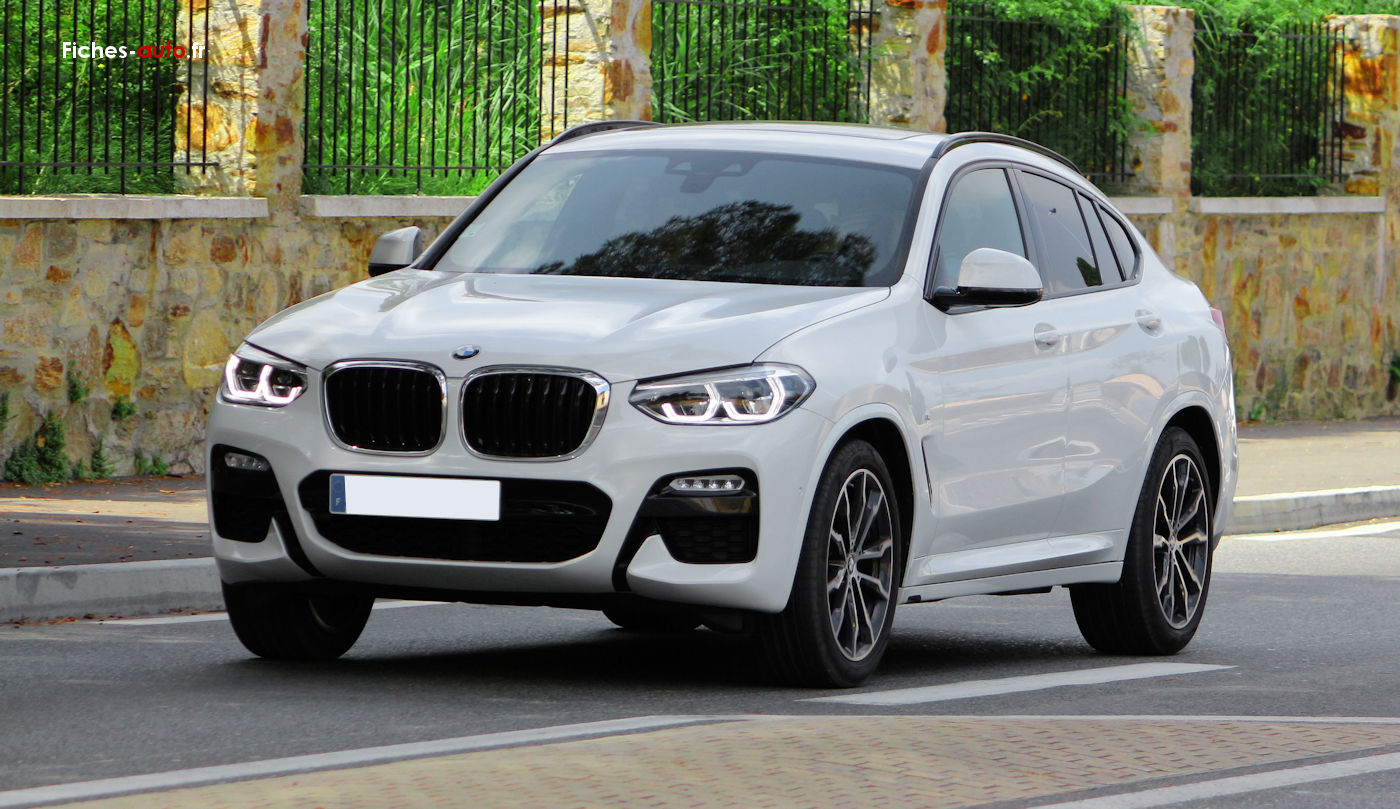 A partir de 78 500 euros : Ciel de pavillon “Anthrazit” // Enjoliveurs d’échappement de forme trapézoïdale à gauche et à droite, en chrome noir // Feux de route anti-éblouissement // Pack aérodynamique M // Pack Advanced Full LED // Inserts décoratifs Aluminium Rhombicle avec baguette d’accentuation chrome brillant perlé // Jantes en alliage léger 20’’ M style 699 M à rayons doubles avec pneumatiques mixtes // Shadow Line brillant BMW Individual // Seuils de porte avec désignation “X4 M40i” ou “X4 M40d” // Sellerie Tissu/Cuir “Vernasca” Schwarz avec surpiqûres contrastantes Bleue // Tableau de bord en Sensatec // Volant M gainé cuir // Boîte de vitesses automatique Sport à 8 rapports avec Steptronic et palettes au volant // Différentiel autobloquant M Sport // Freins M Sport // Direction DirectDrive à démultiplication variable // Suspension DirectDrive