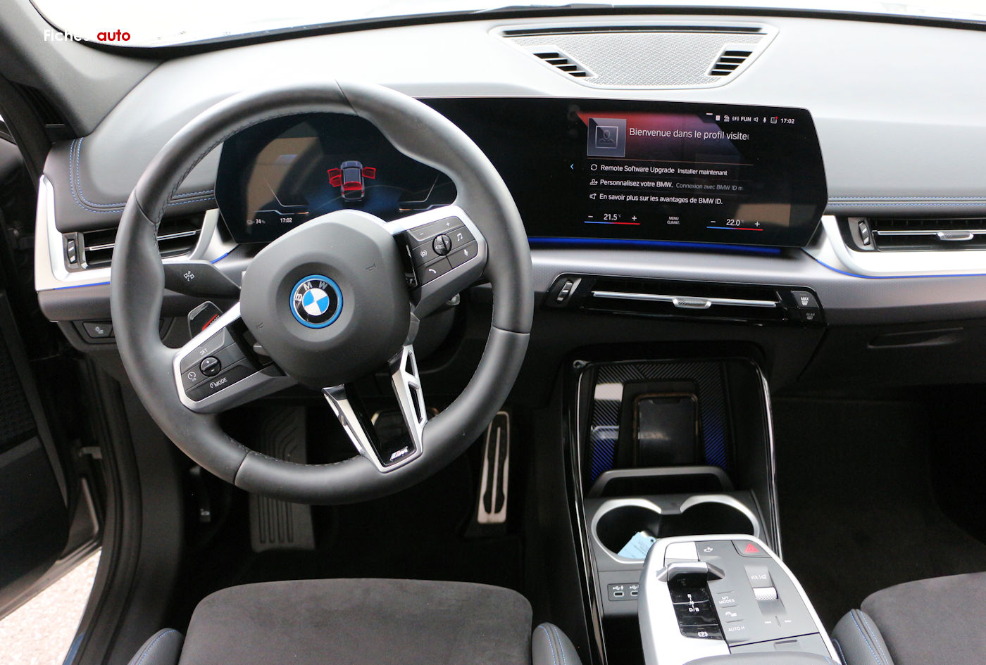 A partir de 46 500 euros : Série + Teinte de carrosserie unie "Alpinweiss" // Sellerie Alcantara / Veganza "Schwarz" avec surpiqûres contrastantes bleues // Jantes en alliage léger 18" style 838 M bicolores à rayons doubles // Inserts décoratifs Aluminium M Hexacube // Habillage Luxury : haut de la planche de bord et panneaux de porte en Sensatec noir avec surpiqûres // Rails de toit Aluminium Line satiné (en option sur iX1) // Shadow Line M brillant // Volant M gainé cuir // Éléments extérieurs et intérieurs M Sport // Éléments intérieurs M // Ciel de pavillon M anthracite // Sièges avant Sport // Suspensions Adaptive M // Boîte de vitesses avec palettes au volant (Automatique - 7 rapports)