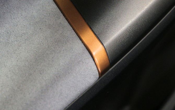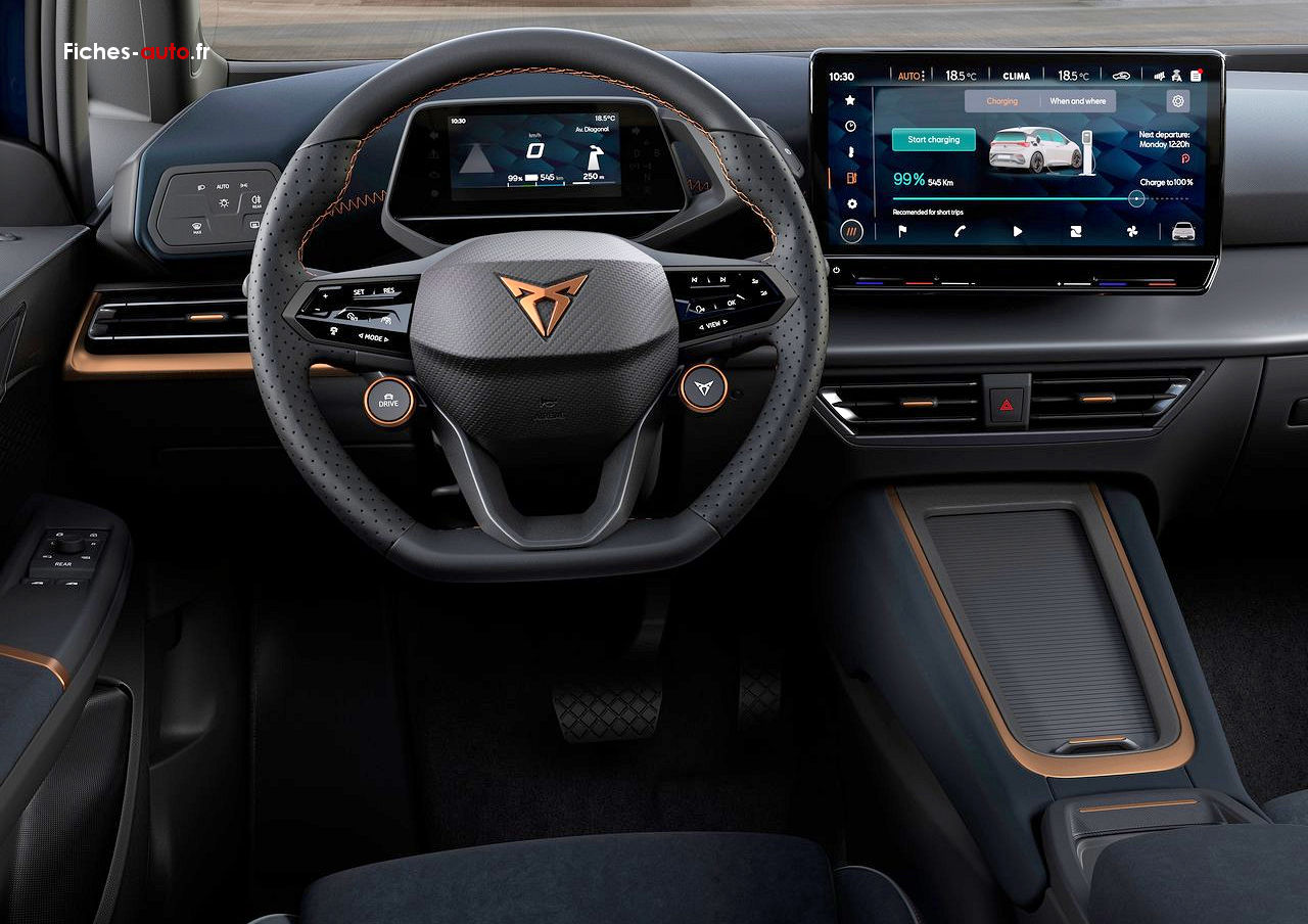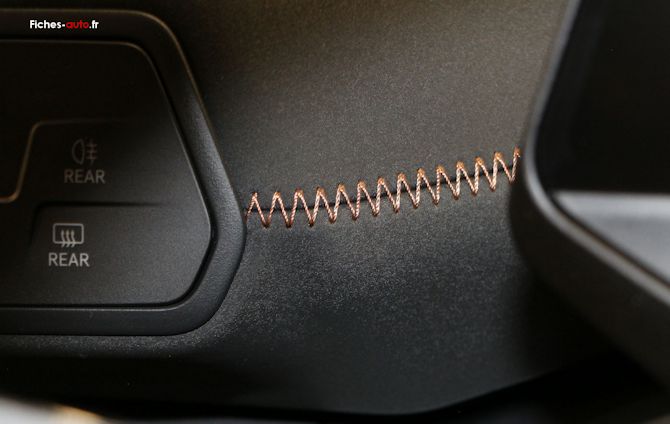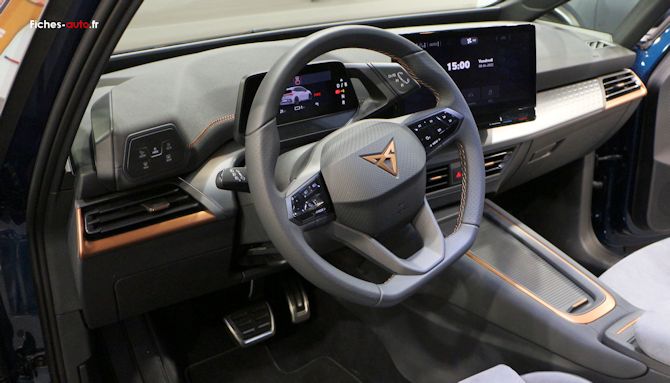 Sans atteindre la finition d'un véhicule premium dont elle cherche à devenir, la Born a toutefois été bien plus futée que l'ID3 concernant le choix des matière et du grain des plastiques. Cela mène vers une qualité perçue nettement meilleure malgré le fait que le coût de revient ne semble pas si éloigné. La cohérence entre les matières et couleurs est très bonne, avec en plus une relative diversité des matériaux : plaquage façon aluminium, touches cuivrées, velours qui fait penser à de l'alcantara, plastiques mats ou au grain plus subtils etc. Et donc malgré un style un peu grisonnant et limite austère, au final l'habitacle dégage une belle prestance et une identité forte. Et le fait que la Born n'emploie pas plein de plastique noir laqué comme sur l'ID3 aide à la valoriser par rapport à sa cousine allemande (qui a toutefois corrigé pas mal de choses lors du restylage).