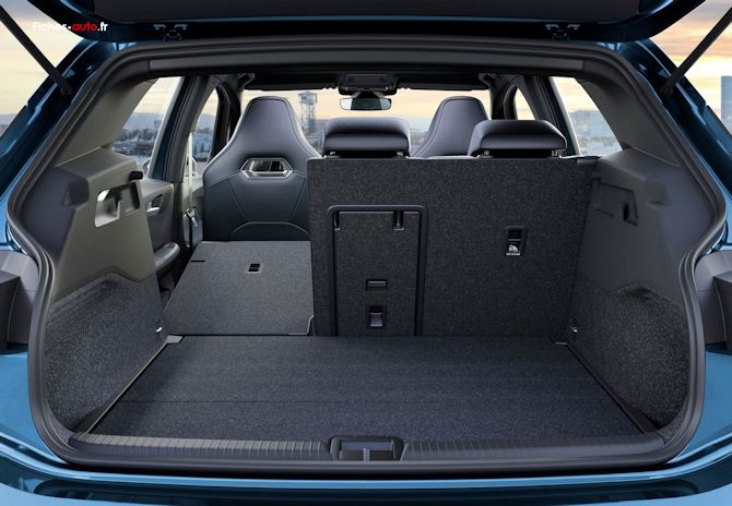 Le coffre offre un volume de 385 litres selon la norme VDA. En exploitant chaque recoin (mesure en norme liquide), cette capacité peut dépasser les 400 litres, et s'étend jusqu'à 1260 litres avec la banquette arrière repliée. Le seuil de coffre est un peu trop élevé mais la forme reste assez pratique à l'utilisation (bien que j'aurais aimé une soute un peu plus proportionnée sur la longueur, mais c'est une compacte et c'était difficile à faire ...).