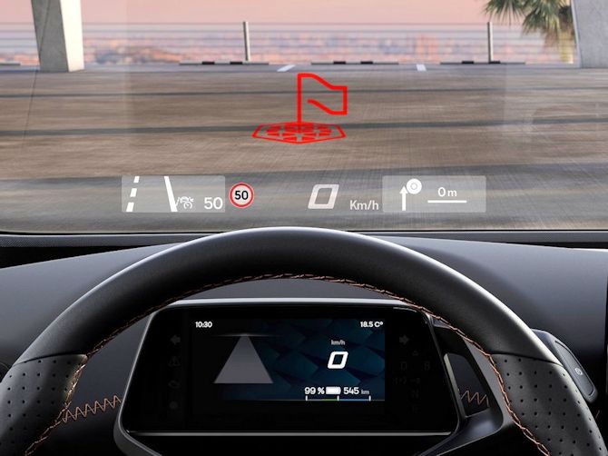 Notons aussi la présence d'un troisième écran, si on peut le considérer ainsi, je pense à la visée tête haute XXL dotée de la réalité augmentée.