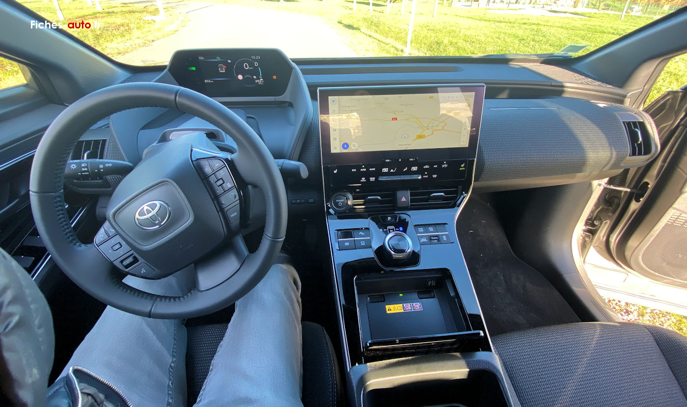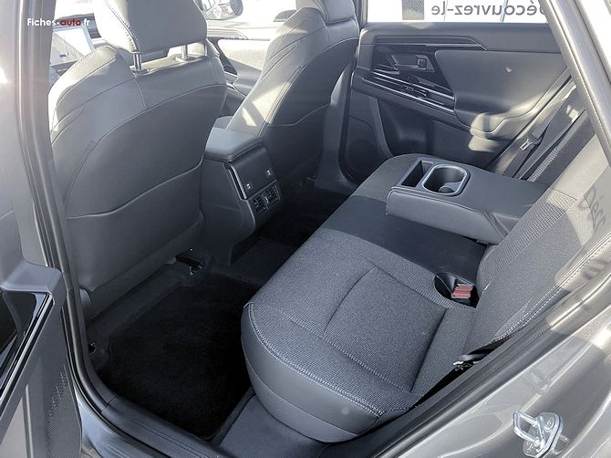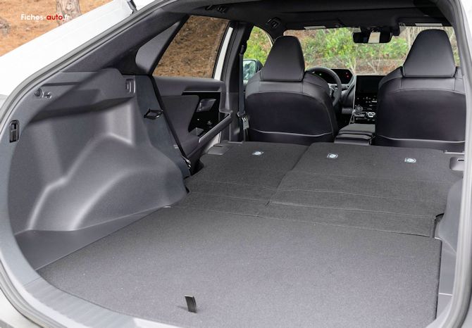 Niveau habitabilité et coffre le BZ4X se révèle être une familiale accomplie. Pour être plus précis, c'est surtout la place au deuxième rang qui enchante par sa générosité (vous pourrez accueillir de grandes personnes), et il aurait peut-être même été judicieux de tronquer un peu cet espace pour offrir un peu plus de volume au coffre. Car avec ses 452 litres sur le papier il semble un peu léger ... Dans les faits il semble faire un peu plus, ce qui est appréciable. Et puis je rappelle que vous pouvez en obtenir plus en chargeant au delà de la ceinture de caisse (jusqu'au toit), car nous avons affaire ici à un hayon. Enfin, je ne sais toutefois si le sous coffre est intégré dans les chiffres, Toyota est tellement mauvais pour informer sur ses produits ...