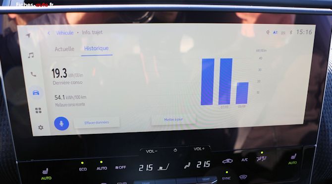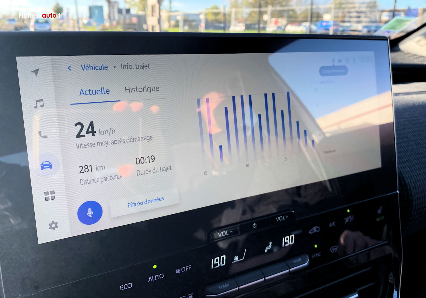 L'écran de 12.3 pouces se révèle plutôt généreux et de qualité, notamment par ses couleurs vives et la finesse de sa définition (sans omettre sa clarté intense). Toutefois, c'est ce qu'il y a derrière qui est décevant .. L'interface a en effet très peu de chose à vous montrer, et heureusement qu'il y a Apple Car Play et Android Auto pour sauver les meubles.