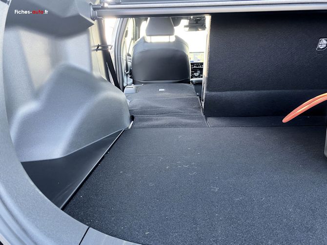 Niveau modularité on a une banquette qui ne se fractionne qu'en deux parties, comme le font la majorité des concurrents (un Model Y permet trois parties, un plus au niveau des possibilités). Le plancher obtenu reste toutefois très plane, plus que la moyenne.