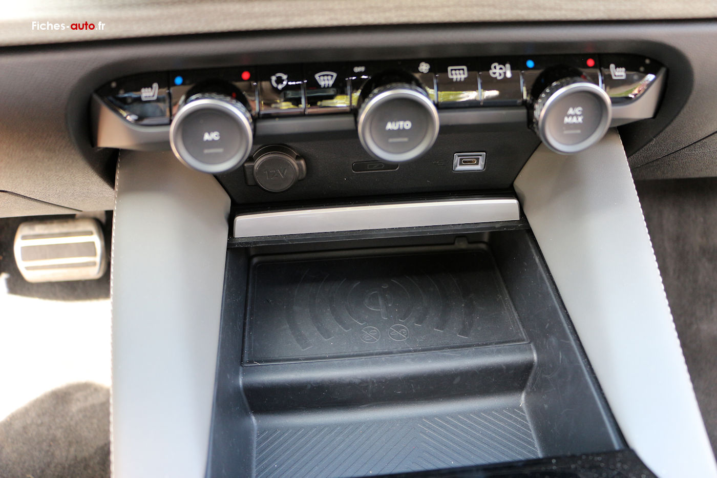 On retrouve à l'avant la charge par induction (pas de série, partir de Shine / 3ème niveau de finition) qui est fermable (on peut y cacher des choses) qui permet d'y caser pas mal de petites babioles.