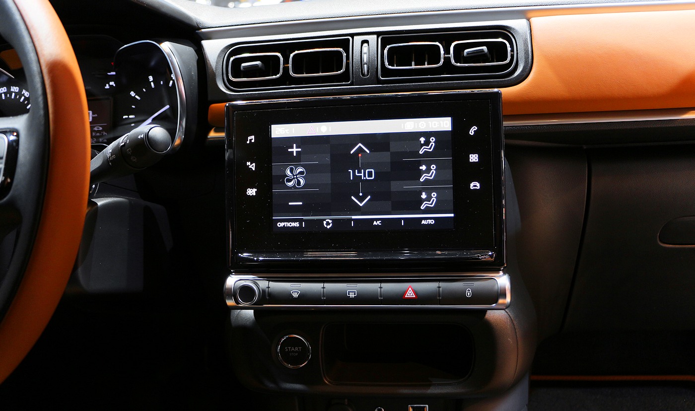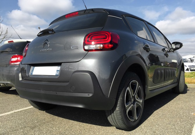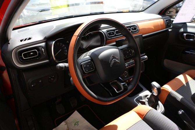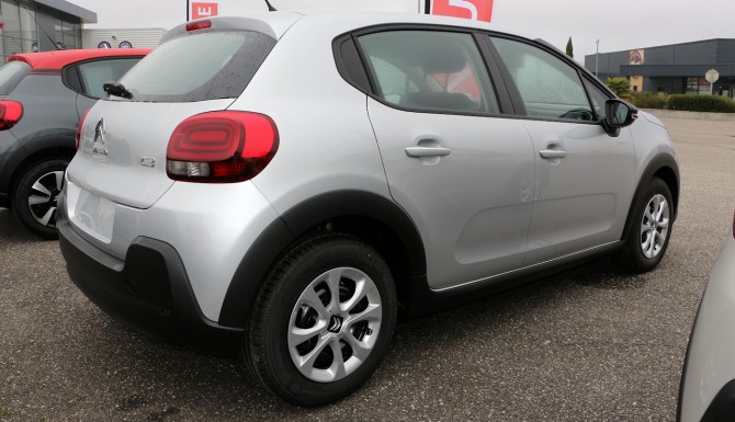 A partir de 17 100 euros : Roue de secours homogène (sur motorisations PureTech) // Allumage des feux automatique // Eclairage d’accueil et d'accompagnement // Essuie-vitre avant automatique // CITROËN Connect Radio sur tablette tactile 7"(10) // Airbump® Black avec ponctuelle colorée (blanc ou rouge si toit rouge) // Enjoliveurs de montant central et custode Noir Brillant // Pavillon bi-ton avec coques de rétroviseurs couleur pavillon, enjoliveurs d'antibrouillard couleur pavillon et adhésifs de custodes avec liseré blanc ou rouge si toit rouge // Accoudoirs de panneaux de portes textile avec sangle // Pommeau de levier de vitesses en croûte de cuir // Volant en croûte de cuir // Enjoliveurs 3D 16pouces