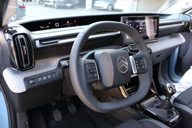(Source Citroën Septembre 2024) A partir de 23 300 euros en version électrique : ABS avec répartiteur électronique de freinage (REF) et aide au freinage d'urgence (AFU) // Aide au démarrage en pente // Aide au stationnement arrière // Airbags frontaux, latéraux et rideaux // Allumage automatique des feux de croisement // Clignotants impulsionnels // Climatisation manuelle // Condamnation centralisée avec télécommande PLIP // Détection de sous-gonflage des pneumatiques // Direction à assistance électrique // ESP (contrôle dynamique de stabilité) // Fixations ISOFIX sur les deux places arrière // Lève-vitres avant électriques à descente séquentielle // Régulateur-limiteur de vitesse // Rétroviseurs extérieurs réglables électriquement // Sécurité enfants mécanique // Suspension Citroën Advanced Comfort // Volant réglable en hauteur et en profondeur // Version électrique : Avertisseur sonore piéton, Chargeur embarqué 7,4 kW, Câble de recharge Mode 3 pour Wall Box (triphasé 32 A)