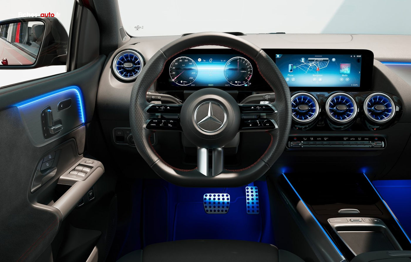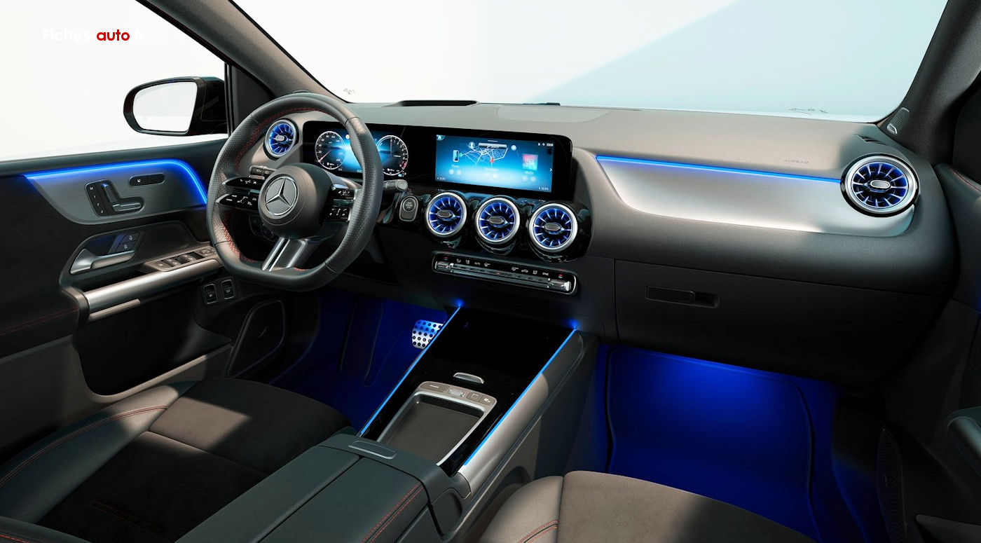 Niveau distinctions (avec la A), on a ici une planche de bord légèrement différentes et des touches métalliques plus nombreuses que dans la Classe A (du moins sur les versions haut de gamme, les finitions d'entrée remplacent tout ça par du plastique).