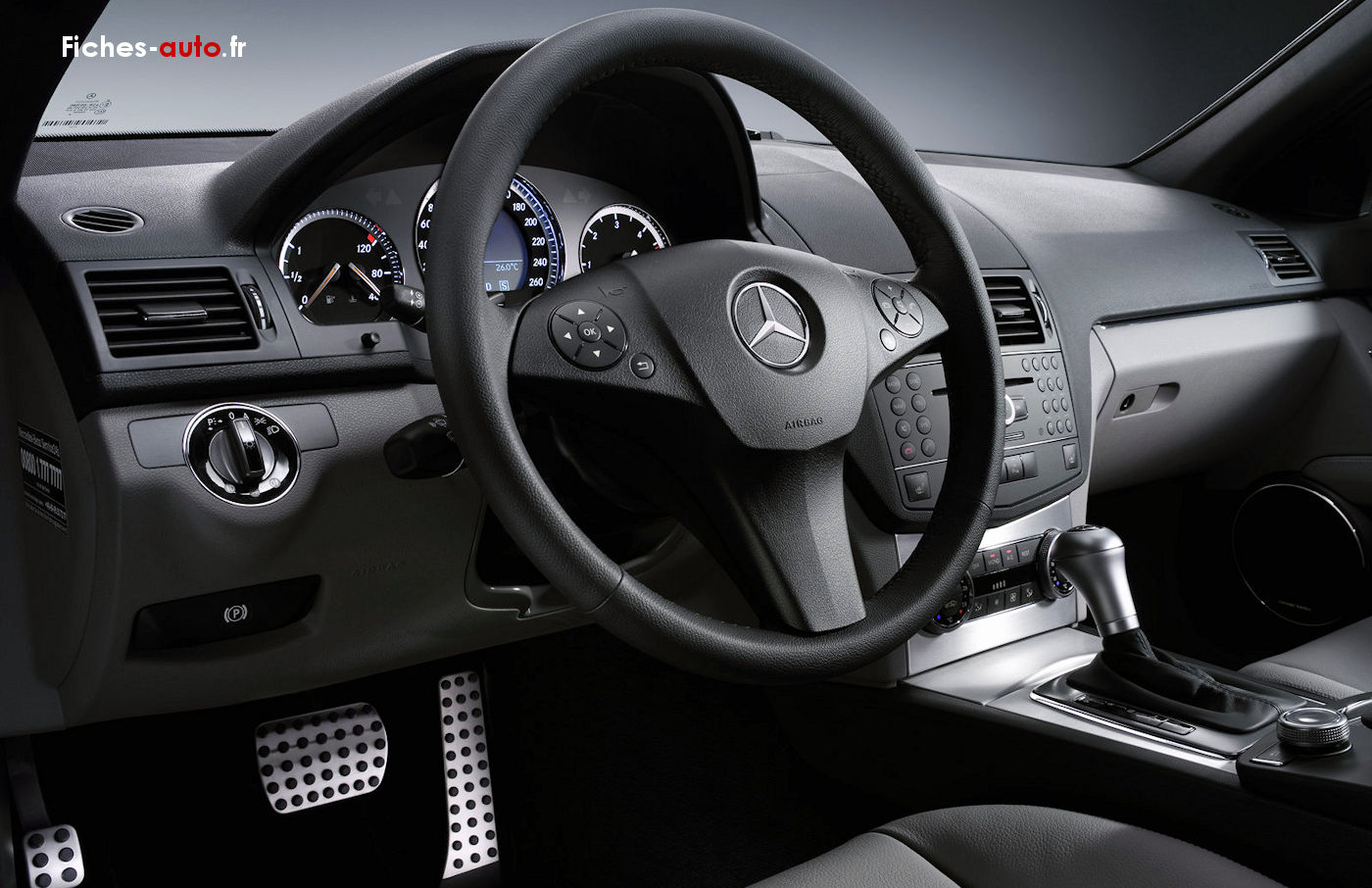 Notez bien que l'intérieur de la Classe C a été métamorphosé lors de son restylage. La planche de bord a été revue en profondeur pour abandonner l'écran rétractable. La présentation semble s'inspirer de BMW et Audi dont l'écran trône en plein milieu sans vouloir se cacher.