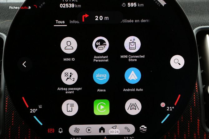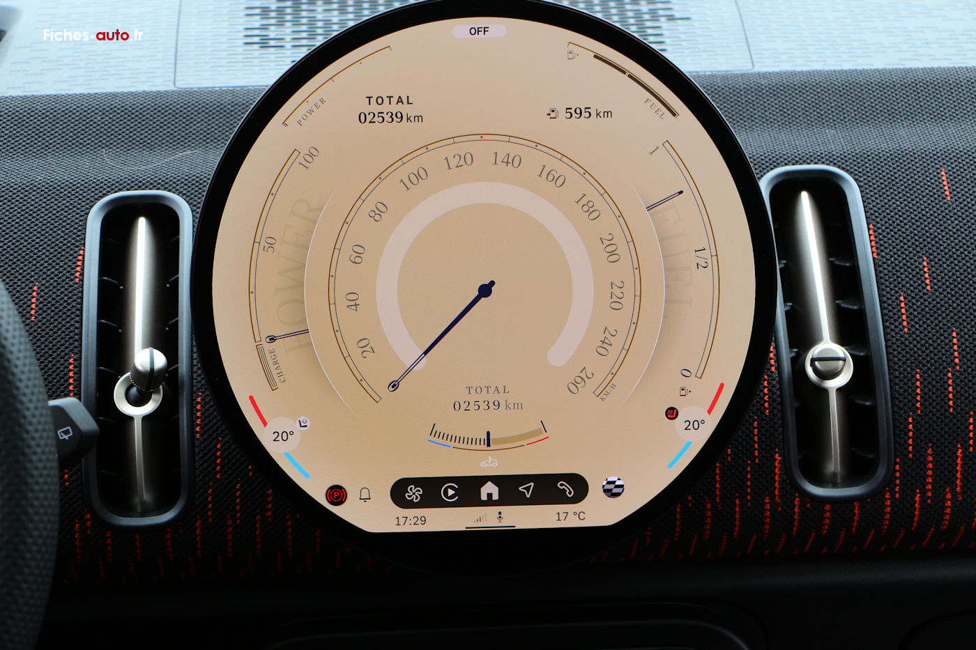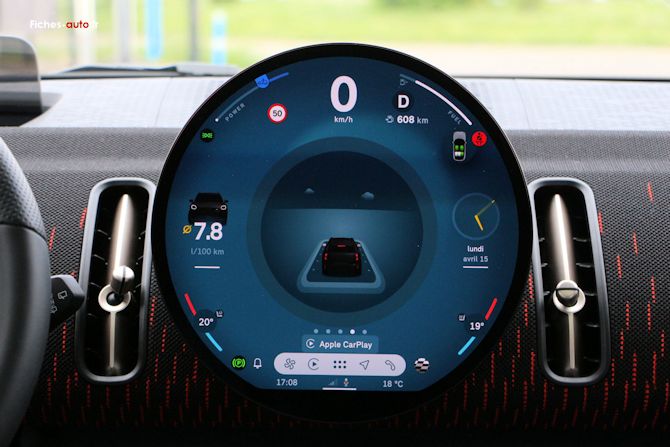 De plus, entre le seul écran central (assez modeste) et l'absence d'écran au niveau du combiné, ça pourra paraître un peu léger pour certains, car à notre époque on a souvent affaire à de grosses lucarnes ! Bref, encore une fois Mini est carencée sur l'infodivertissement, mais ça reste une habitude de longue date ...