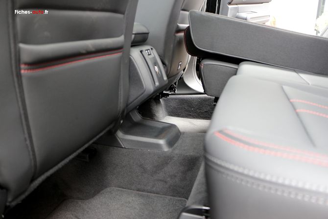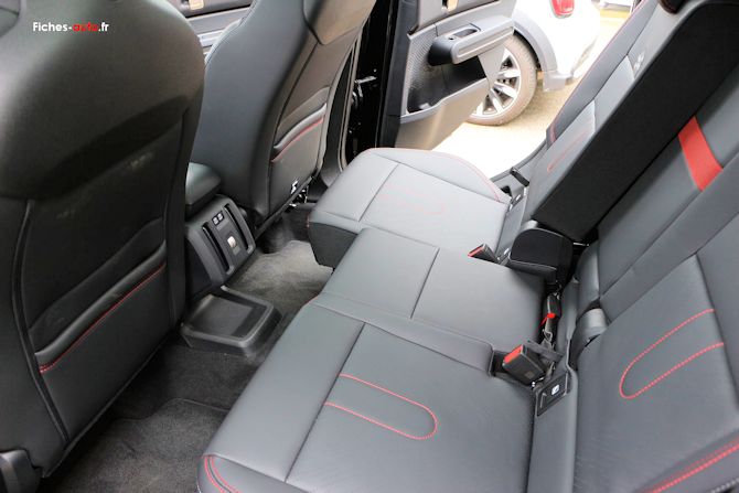 Niveau habitabilité au deuxième rang c'est franchement très bon, il y a de l'espace aux jambes sans le moindre sentiment de carence. Les assises restent assez inclinées pour ne pas souffrir lors des longs trajets. Notez qu'il dispose ici d'une banquette plus large, d{o une majoration de l'habitabilité sans réelle hausse de l'empattement.