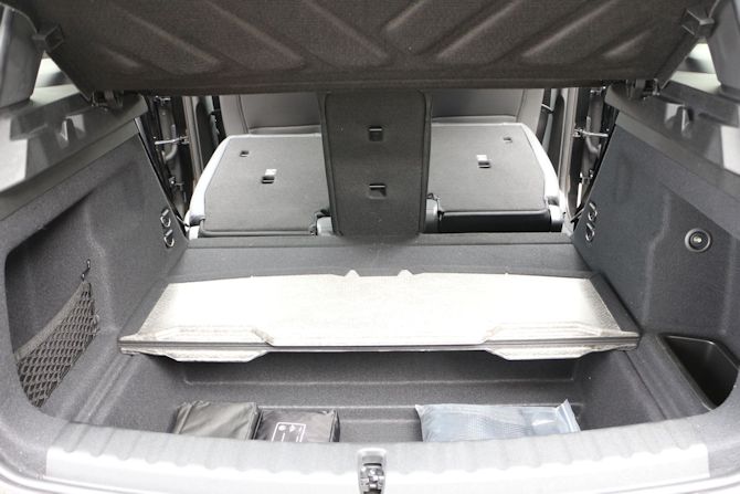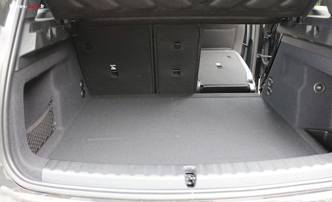 Avec la banquette coulissante sur 13 cm, hélas en option (grrr!), on pourra toutefois dépasser cette valeur et dépasser légèrement les 550 litres de capacités (il faudra toutefois éviter les passagers arrière de plus de 1m30. Sachez que les dossiers aussi sont modulables, mais uniquement pour valoriser le coffre (car les positions permises ne permettent pas à un occupant d'être à l'aise : dossier très droit).