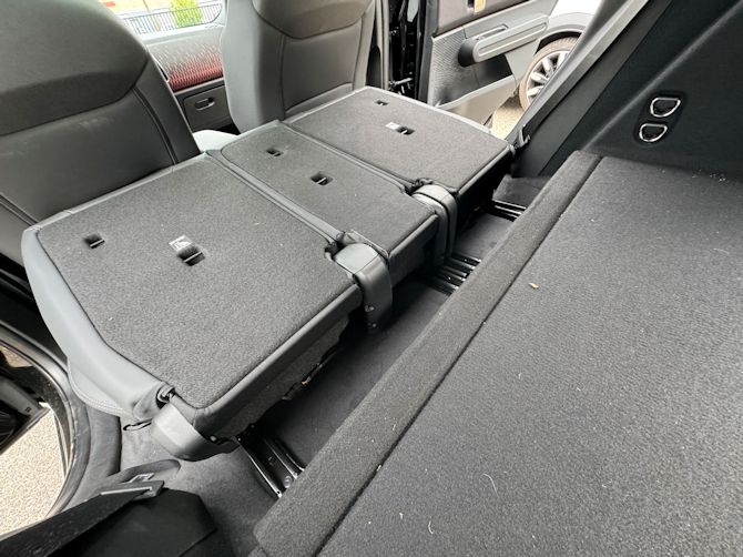 Une fois les sièges rabattus, on atteint 1530 litres de contenance. Le plancher obtenu n'est pas parfaitement plat mais la pente est loin d'être prononcée et il n'y a pas de marche entre le plancher de coffre et le siège.