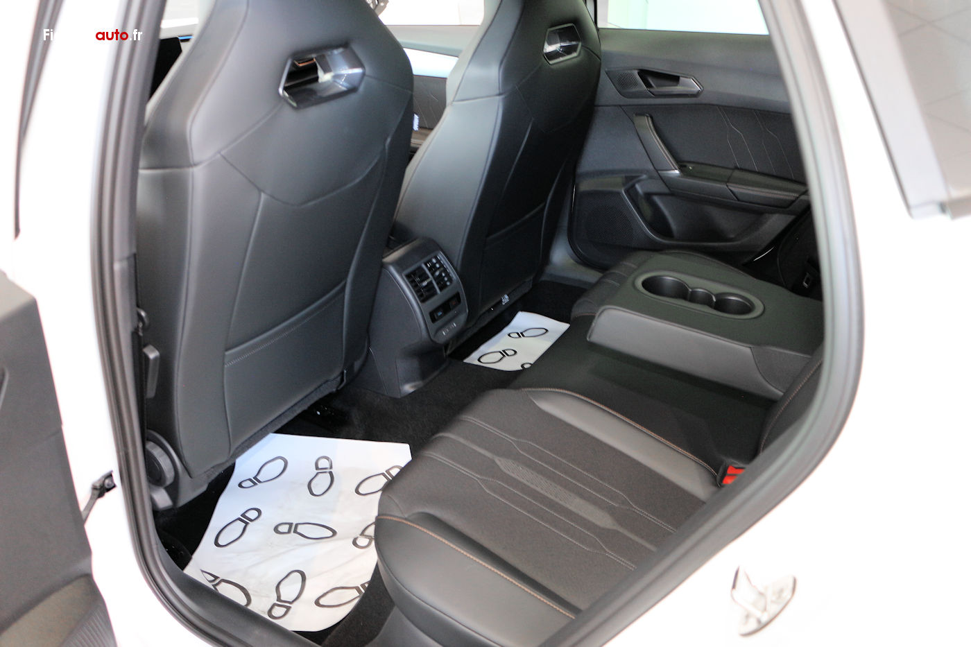 A partir de 33 050 euros : (Source Curpa décembre 2021) Projecteurs Full LED // Feux arrière LED avec bandeau Infinite Light // Clignotants arrière à défilement et cérémonie de bienvenue AR // Éclairage de bienvenue avec projection du logo CUPRA au sol // Seuils de porte CUPRA rétro-éclairés // Pack intérieur Copper avec inserts Dark Alu // Volant cuir multifonction (avec palettes sur DSG) // Éclairage d’ambiance personnalisable // Réglage en hauteur et lombaire des sièges AV // Pare-soleils avec miroirs de courtoisie éclairés // Lampes de lectures à l'AV et à l'AR // Dossiers AR rabattables 2/3 - 1/3 // Digital Cockpit 10,25" // Système de navigation 3D sur écran tactile HD 12" // Système audio 7 HP avec contrôle vocal "Hola Hola" // Connectivity Box avec chargeur à induction // Full Link avec CarPlay® sans fil // 2 prises USB-C éclairées à l'AV et 2 à l'AR // CUPRA CONNECT Media & Internet // Radio numérique DAB // Sign Assist (reconnaissance des panneaux de signalisation) // Régulateur de vitesse adaptatif ACC prédictif avec arrêt d’urgence // Feux de route intelligents (Light Assist) // Aide au stationnement arrière // Caméra de recul // Capteur de pluie et de luminosité // Climatisation automatique tri-zone « Climatronic » // Accès et démarrage mains-libres // Airbags latéreaux, rideaux et central // Direction dynamique // Fixations ISOFIX avec Top-Tether à l'arrière