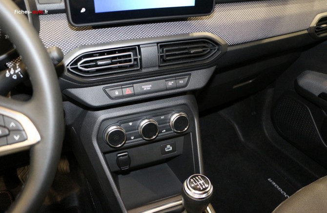 (Source Dacia Novembre 2022) A partir de 16 990 euros : Signature lumineuse à LED et feux de jour à allumage automatique à LED // Poignées de porte extérieures noires // Rétroviseurs extérieurs noirs // Barres de toit longitudinales fixes // Boucliers avant et arrière ton caisse // Enjoliveurs 16” Miliana // Garde au sol surélevée // Protection de passages de roue et bas de marche noirs // Skis avant / arrière noirs // Tours d’aérateurs de couleur Gris fumé et curseurs blancs // Banquette arrière rabattable 1/3-2/3 (assise et dossier) // Poignées de porte intérieures noires // Cache-bagages (5 places seulement) // Sellerie spécifique Essentiel // Direction assistée électrique // Aide au démarrage en côte // Stop & Start, ECO mode // Limiteur de vitesse // Condamnation automatique des portes en roulant // Condamnation des portes électrique avec télécommande // Lève-vitres avant électriques // Prise USB, prise 12 V avant // Volant et siège conducteur réglables en hauteur // Media Control : radio DAB avec commandes sur le volant, affichage intégré dans l’écran de l’ordinateur de bord, support smartphone fixe sur la planche de bord, 2 haut-parleurs avant, connexion Bluetooth®, application mobile Dacia Media Control