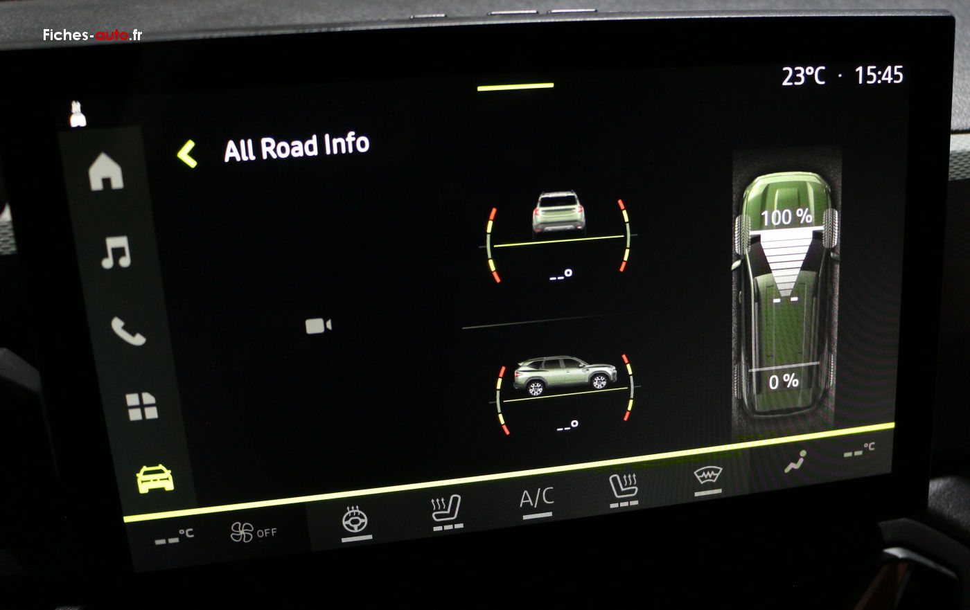 A partir de 26 500 € : Jantes alliage 17" diamantées Tergan // Rétroviseurs extérieurs Gris Mégalithe // Skis avant/arrière Gris Mégalithe // Antenne requin // Planche de bord effet Denim // Panneaux de porte Denim Bleu et poignées de tirage Gris Acier // Sellerie spécifique Expression // Climatisation automatique bi-zone avec aérateurs arrière // 5 points YouClip // Réglage lombaire conducteur // Siège passager réglable en hauteur // Rétroviseurs rabattables électriquement // Frein de parking électrique // Console centrale avec accoudoir et rangement // Banquette arrière 40/20/40 Easy Fold-60/40 // Capteurs de pluie // Feux antibrouillard // Système de contrôle adaptatif en descente (sur version 4x4)