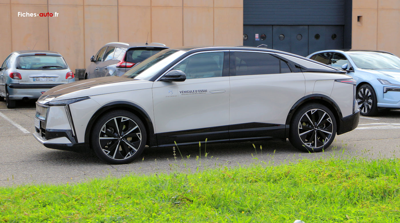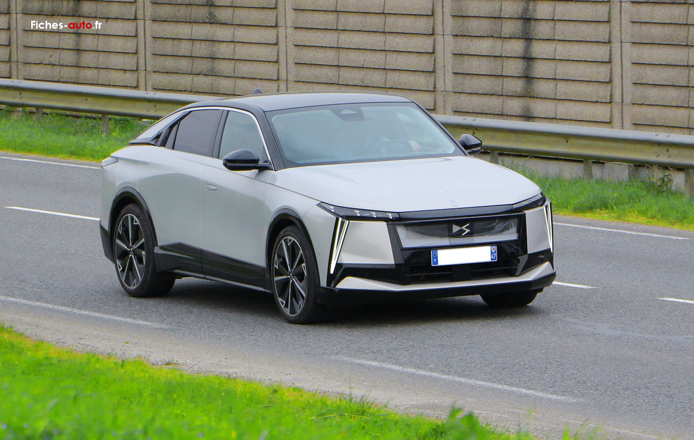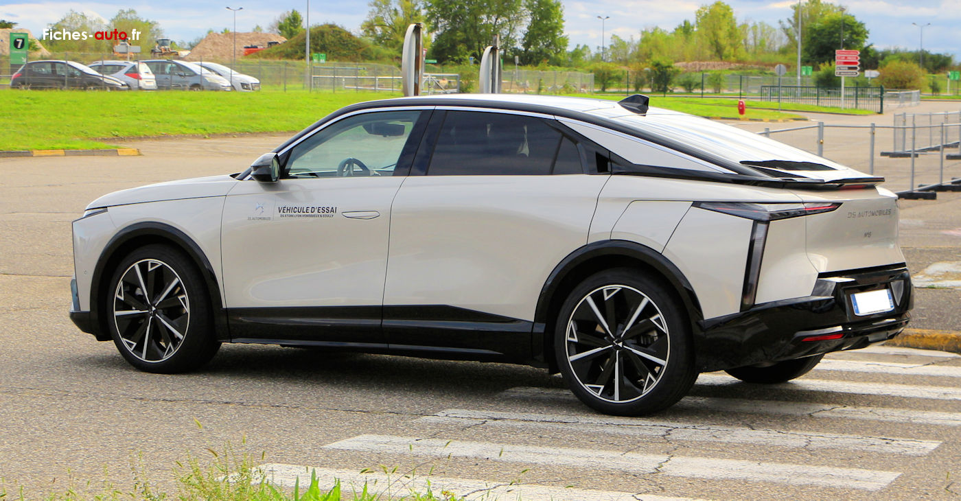 A partir de 59 200 euros : climatisation automatique bi-zone // accès et démarrage mains libres // aide au stationnement avant et arrière avec caméra de recul // boîte à gants réfrigérée, éclairée et floquée // pare-brise teinté feuilleté acoustique // vitres latérales avant et arrière feuilletées et acoustiques // essieu arrière multibras // sélecteur de mode de conduite // écran central avec DS IRIS SYSTEM, navigation 3D connectée, Android Auto et Apple CarPlay sans fil // chargeur sans fil ventilé pour smartphone // prises USB + prise 12V // système audio 8 HP // régulateur adaptatif Stop & Go avec surveillance d'attention du conducteur // projecteurs LED avec DS LIGHTBLADE // jantes alliage 19 pouces // câble mode 3 // chargeur embarqué triphasé 11 kW // Plug & Charge // pompe à chaleur