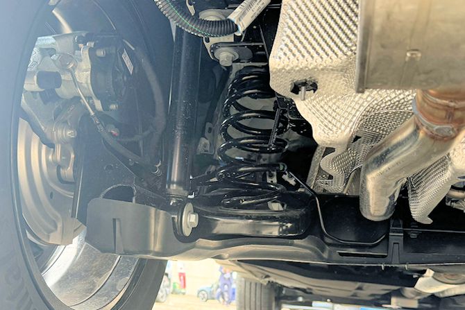 Concernant la garde au sol elle est encore une fois similaire à l'ancien, avec environ 21 cm. Cela permet de belles capacités en tout terrain sans trop pénaliser le comportement (bien qu'il ne faille pas plus !). Pour être très précis, les 4X2 grimpent à 217 mm et les 4X4 à 209 mm (pas d'erreur, la version à transmission intégrale est un peu plus basse, mais c'est difficile à percevoir ...).