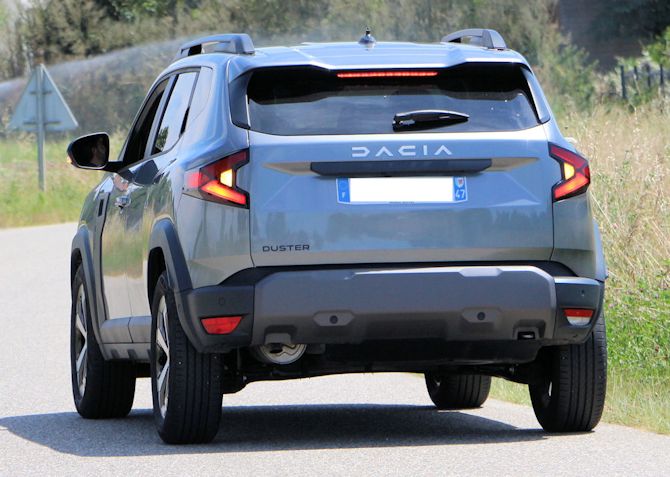 N'ayant jamais eu une réputation de premier ordre concernant son comportement, le Duster de troisième génération peaufine désormais cet aspect pour gagner en vivacité. En effet, avec l'emploi de la plateforme plus moderne CMF(-B), le Duster s'équipe d'un châssis modernisé auquel s'ajoutent des réglages de suspension et de barre anti-roulis qui viennent encore accentuer son (relatif) dynamisme. Loin d'être pataud, on peut enfin dire que le Duster est respectable sur la route, à condition évidemment d'éviter les 16 pouces mais on va y revenir.