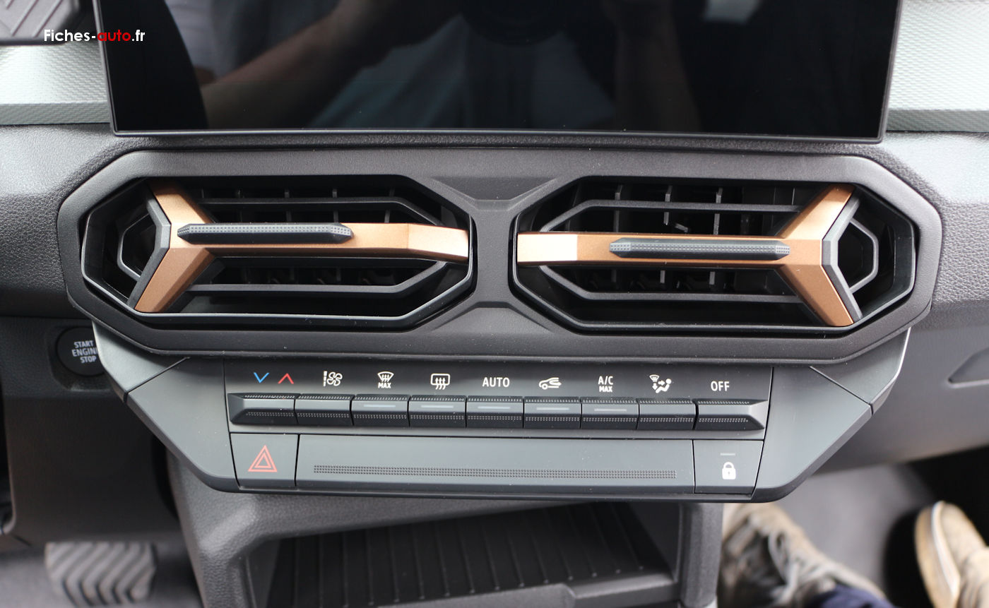 Notez cependant la présence de boutons issus de Renault sur la partie haute de la console centrale, car le Duster a préféré ne pas dématérialiser toutes les fonctions.
