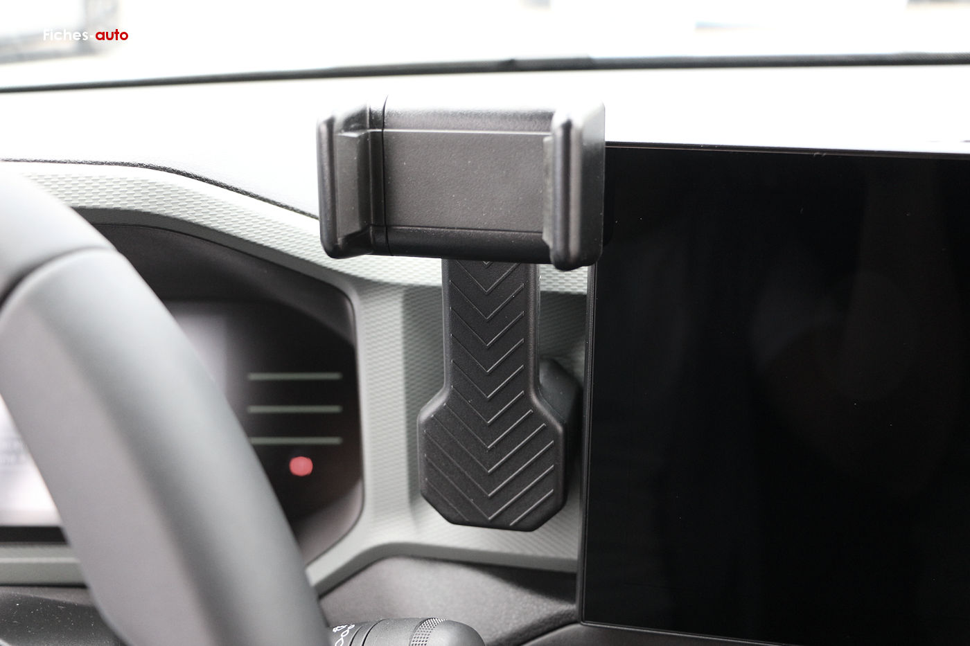 Le Duster 3 est équipé en série d'un combiné de 3.5 pouces et ne dispose pas d'un écran tactile central. L'interface multimédia est contrôlée via un smartphone connecté à la voiture par Bluetooth, utilisant l'application Media Control de Dacia.