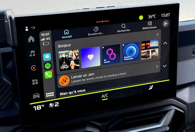À partir de la finition Expression, le Duster 3 bénéficie d'un combiné digital de 7 pouces et d'un "grand" écran tactile de 10 pouces. Cet écran permet d'accéder à la navigation avec cartographie (proposée à partir de la finition Journey toutefois ...) et trafic en temps réel. La réplication smartphone sans fil est compatible avec Android Auto™ et Apple CarPlay™. De plus, les services connectés pratiques incluent la localisation du véhicule à distance et l'affichage des informations de l'ordinateur de bord sur l'application MY Dacia.