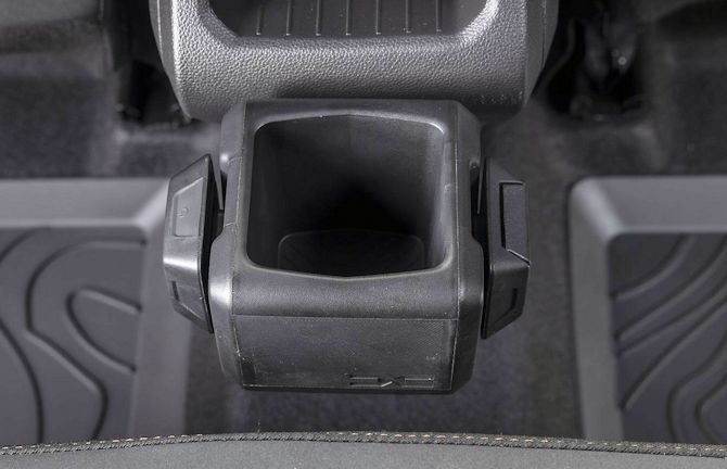 En gros il y a tout un tas de petits supports carrés normalisés dans l'habitacle sur lesquels on peut fixer des porte-Smartphone/tablette, des lampes de poche ou encore des porte-gobelets. On en a à l'avant, au deuxième rang (derrière les appuie-têtes avant) et dans le coffre.