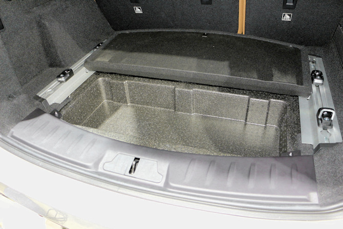 Pour être plus réaliste, on a 430 litres sous tablette / plage arrière auxquels on ajoute 60 litres de rangement potentiel sous le plancher, on arrive donc à 494 litres sec VDA (chiffre officiel donné par la suite, j'avais à la base estimé le tout à 480 litres, on est donc plus très loin et Land Rover semble enfin vouloir communiquer de manière un peu plus honnête et claire).