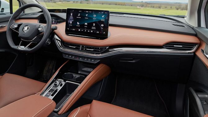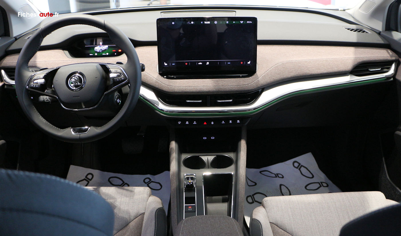 Si tout n'est pas parfait à bord de cet habitacle, avec notamment des éléments de contre-porte assez moyens en terme de qualité perçue, on a globalement une très bonne impression à bord de cet Enyaq. Moi qui suis assez difficile (voire même chia..) sur cet aspect, je dois reconnaître que ça sent bon la qualité, et cela de manière plus convaincante et notoire que sur l'ID4 qui partage sa plateforme et qui était censé en offrir plus de par son positionnement encore plus élevé.