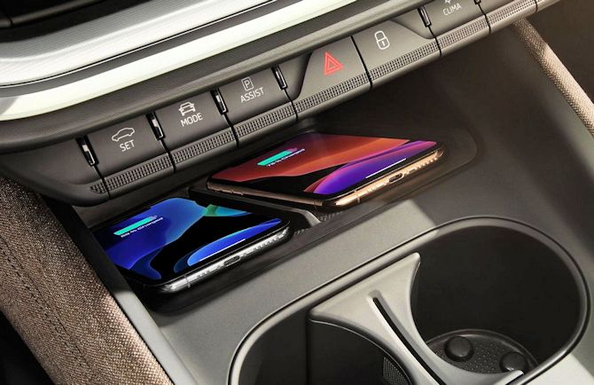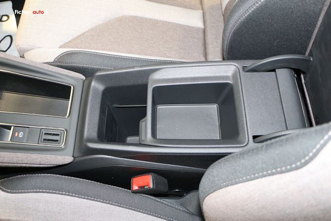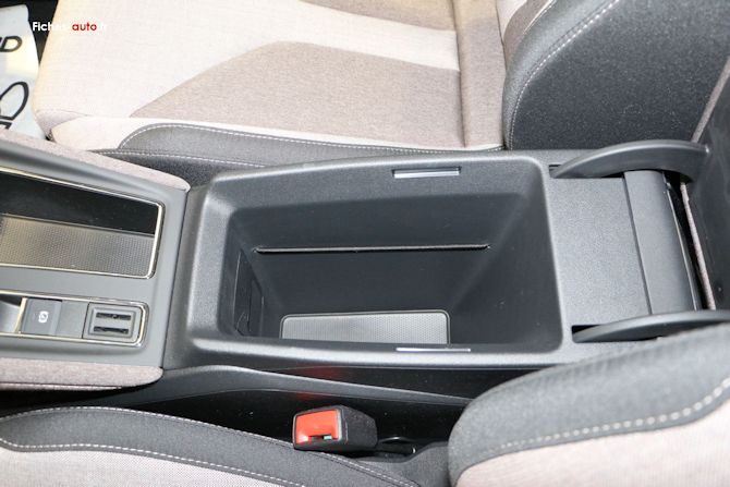 Concernant le rangement placé à l'avant qui comporte de quoi mettre son smartphone, il n'a pas de série la recharge par induction ... Il faut alors opter en option pour la pack confort à 880 euros ou opter pour la finition Sportline qui l'apporte de série.