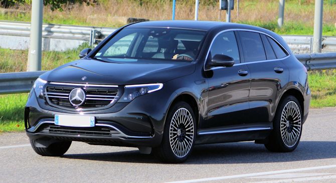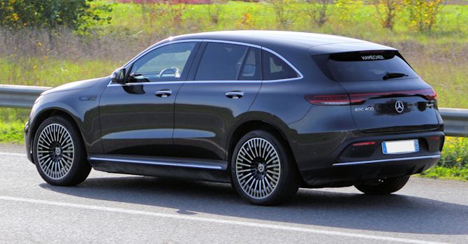 Pesant 2495 kg en ordre de marche, cette version est la seule proposée pour l'EQC. Cela est un indice que la conception a été faite à la hâte sur une base de thermique, car les 85 kWh de batterie brute ne justifient pas une telle masse. Les conducteurs ont le choix en matière de jantes : 19, 20 ou 21 pouces. Il est à noter que les pneus arrière sont légèrement plus larges que ceux de l'avant, avec 255mm contre 235mm. Avec une garde au sol de seulement 14 cm, limitée à la fois par les batteries légèrement proéminentes et par une recherche d'aérodynamisme optimal, l'EQC n'est pas du tout adapté au tout-terrain (il va même jusqu'à frotter certains dos d'âne en compression (suspension écrasée). Contrairement au GLC, il ne dispose pas de suspension pneumatique pour ajuster la hauteur de la voiture selon les besoins, et il est même très surprenant que l'EQC n'ai ni amortissement piloté ni suspension pneumatique ... Cela paraissant d'autant plus pertinent avec les caractéristiques et le positionnement de l'engin.