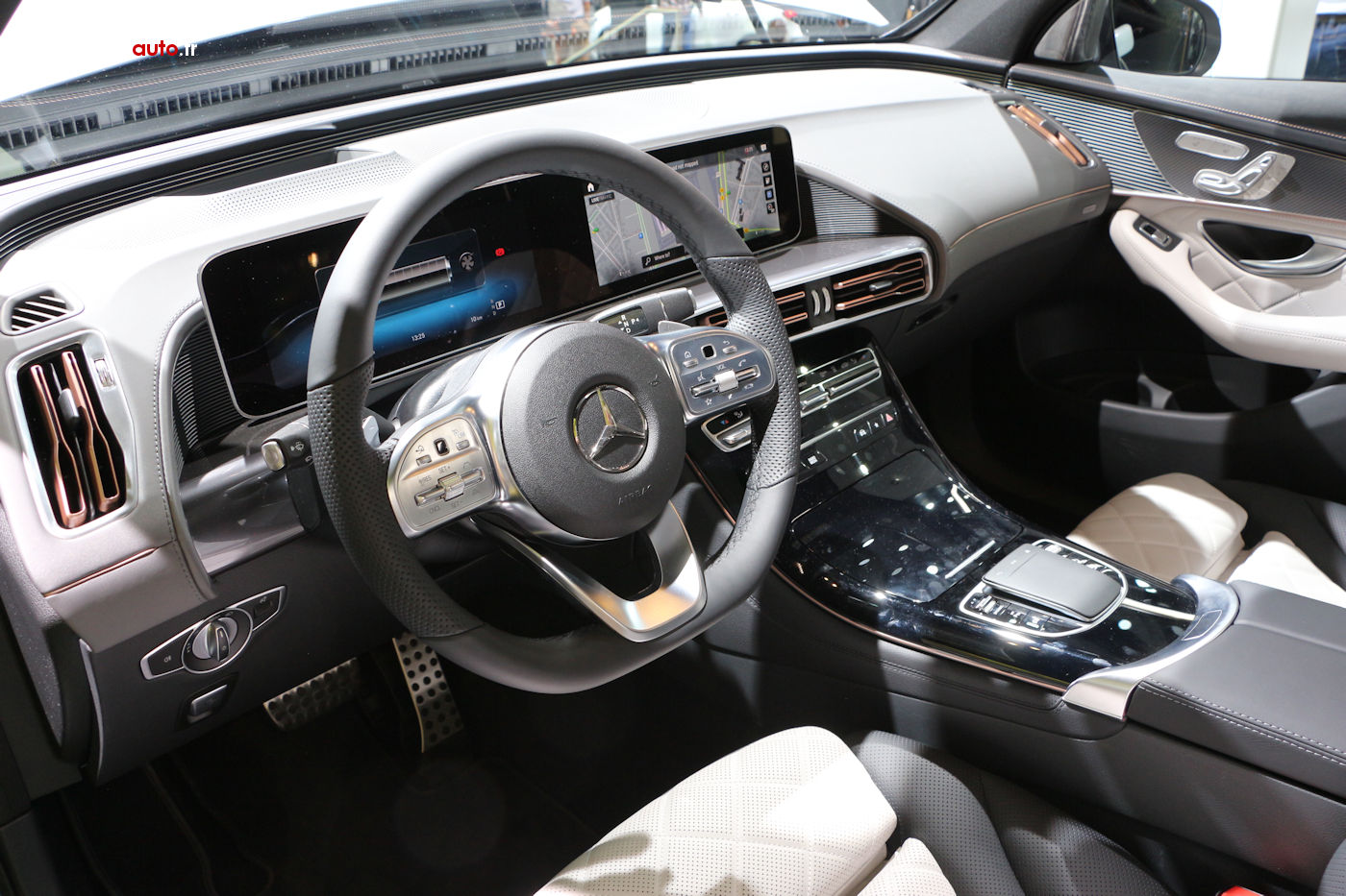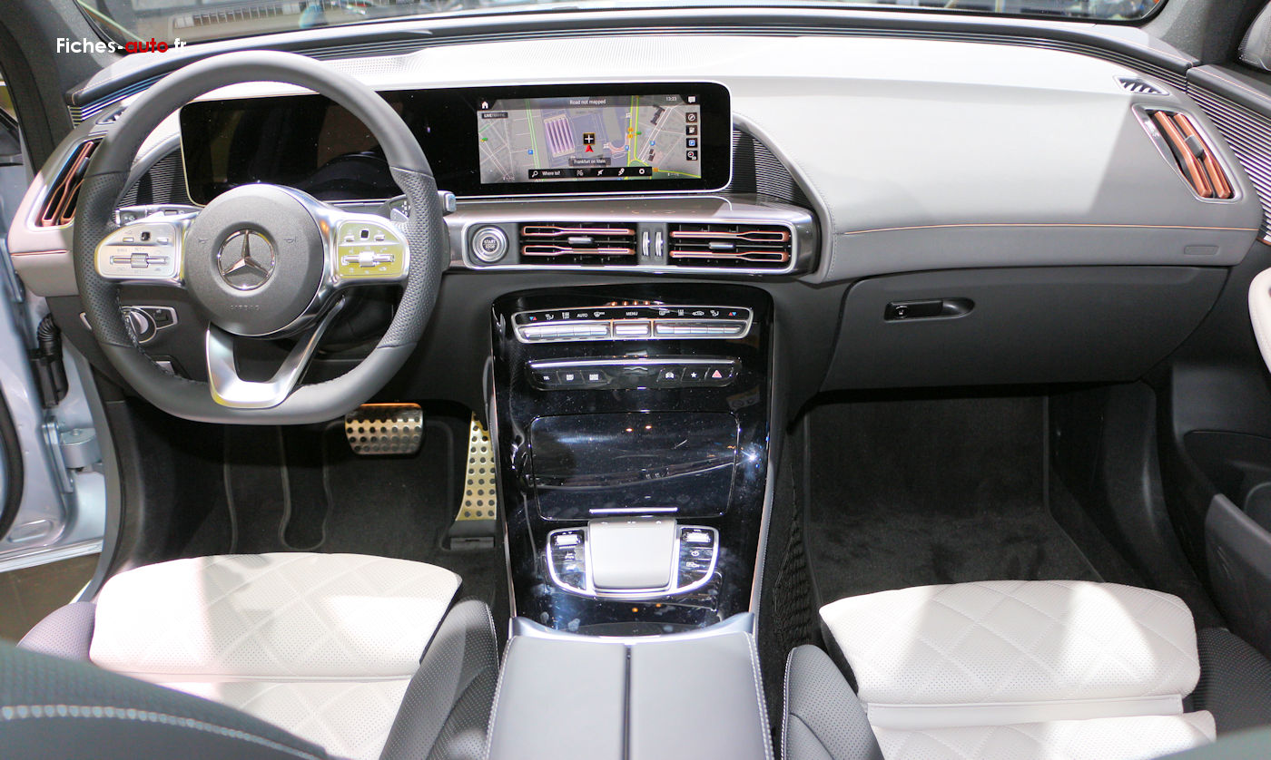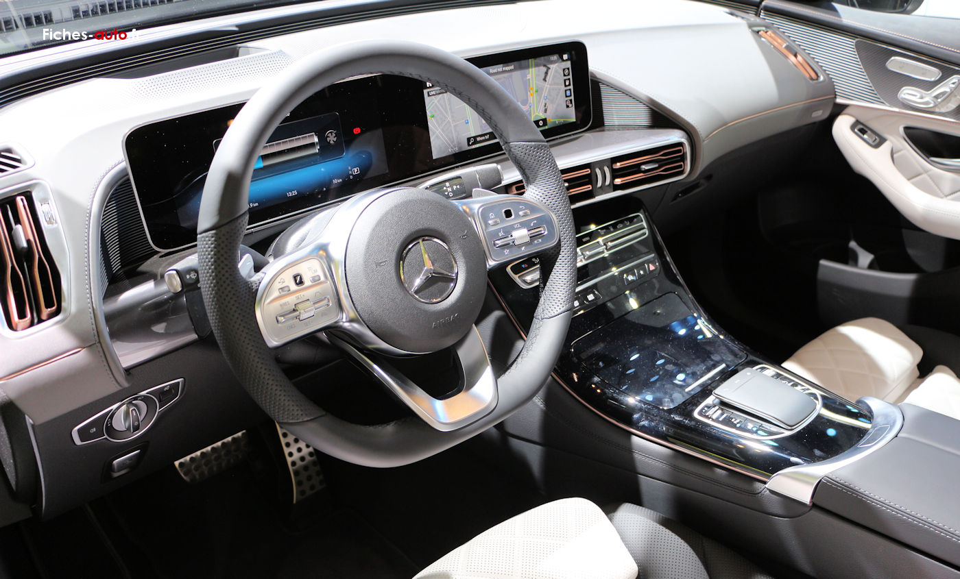 La présentation est ici un peu spéciale. Car si elle reprend ce que l'on voit habituellement sur les Mercedes années 2010, la marque a souhaité doter l'EQC d'éléments bien distinctifs qui peuvent parfois paraître un peu décalés.