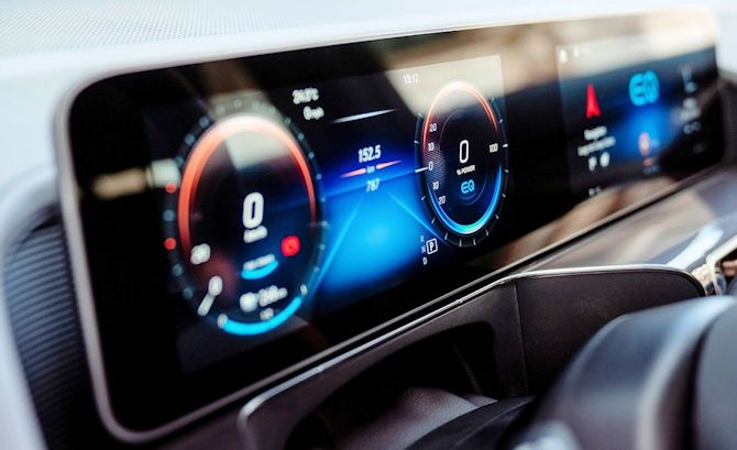 Commun à la Classe A et ses nombreuses cousines, le dispositif impressionne moins aujourd'hui. Car si les écrans sont à la fois fins et dotés de couleurs profondes, leur taille peut paraître un peu modeste désormais. Rappelons qu'il y a deux écrans de 10.25 pouces chacun, soit un total qui fait malgré tout plus de 20 pouces. Pour ma part je n'arrive plus à apprécier les écrans fins car ils ne sont pas très polyvalents (les écrans arrivés a posteriori sur les Mercedes à partir des années 2020 sont plus grands et rectangulaires, bien mieux pour surfer sur Internet par exemple). Le contrôle de l'écran se fait via un pavé physique mais on peut aussi le faire avec les doigts (tactile). Notons qu'on profite des indispensables Apple Car Play et Android auto.