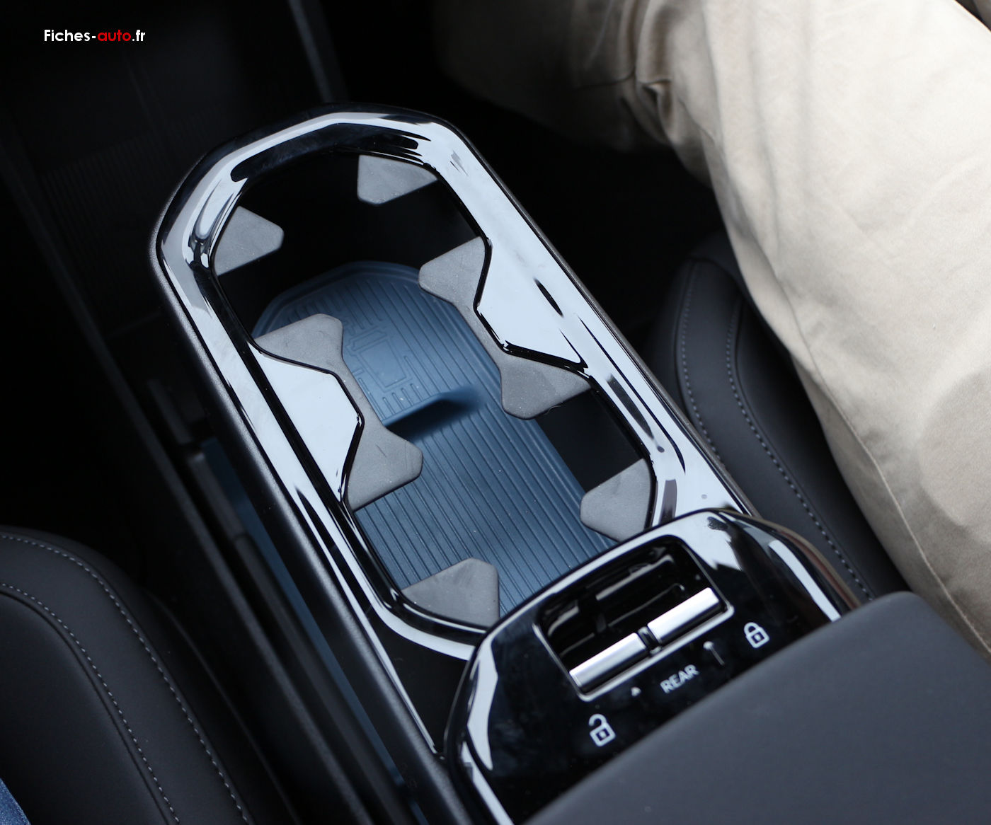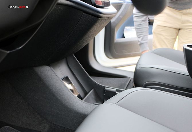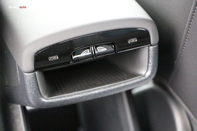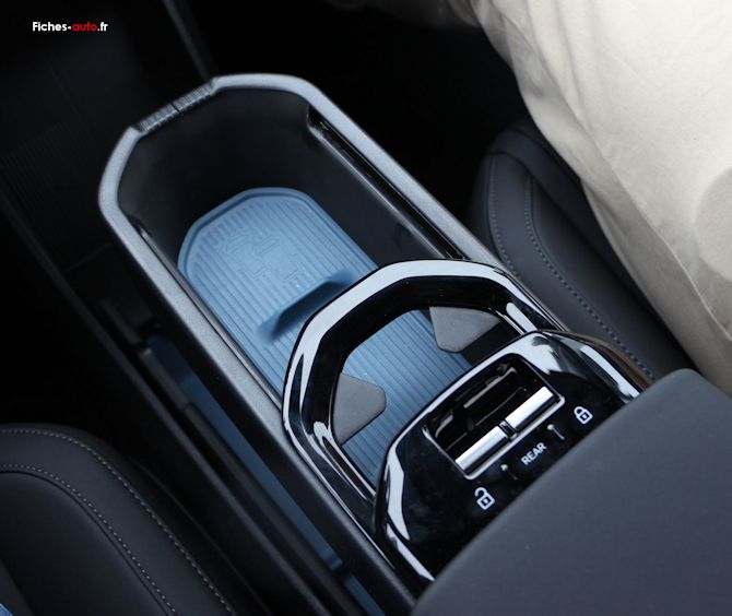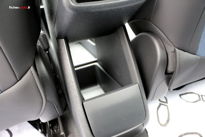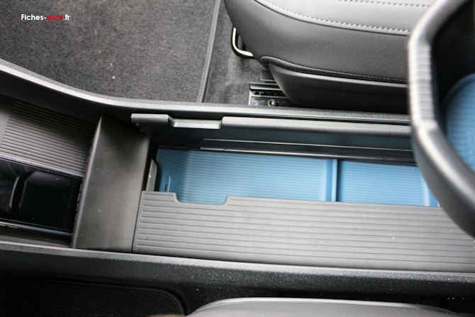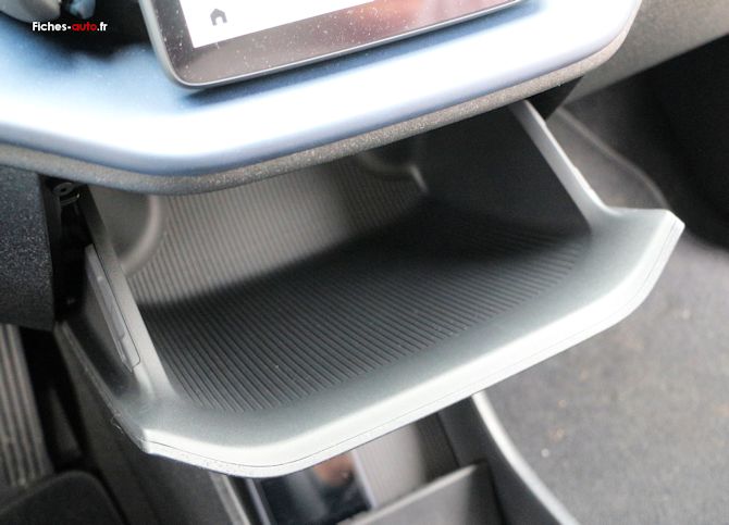 Il y a tout d'abord un rangement central sous l'écran, une sorte de boîte à gants centrale pour ainsi dire (car il n'y en na pas du côté du passager). C'est bien vu car en la plaçant au milieu tout le monde y accède plus facilement.