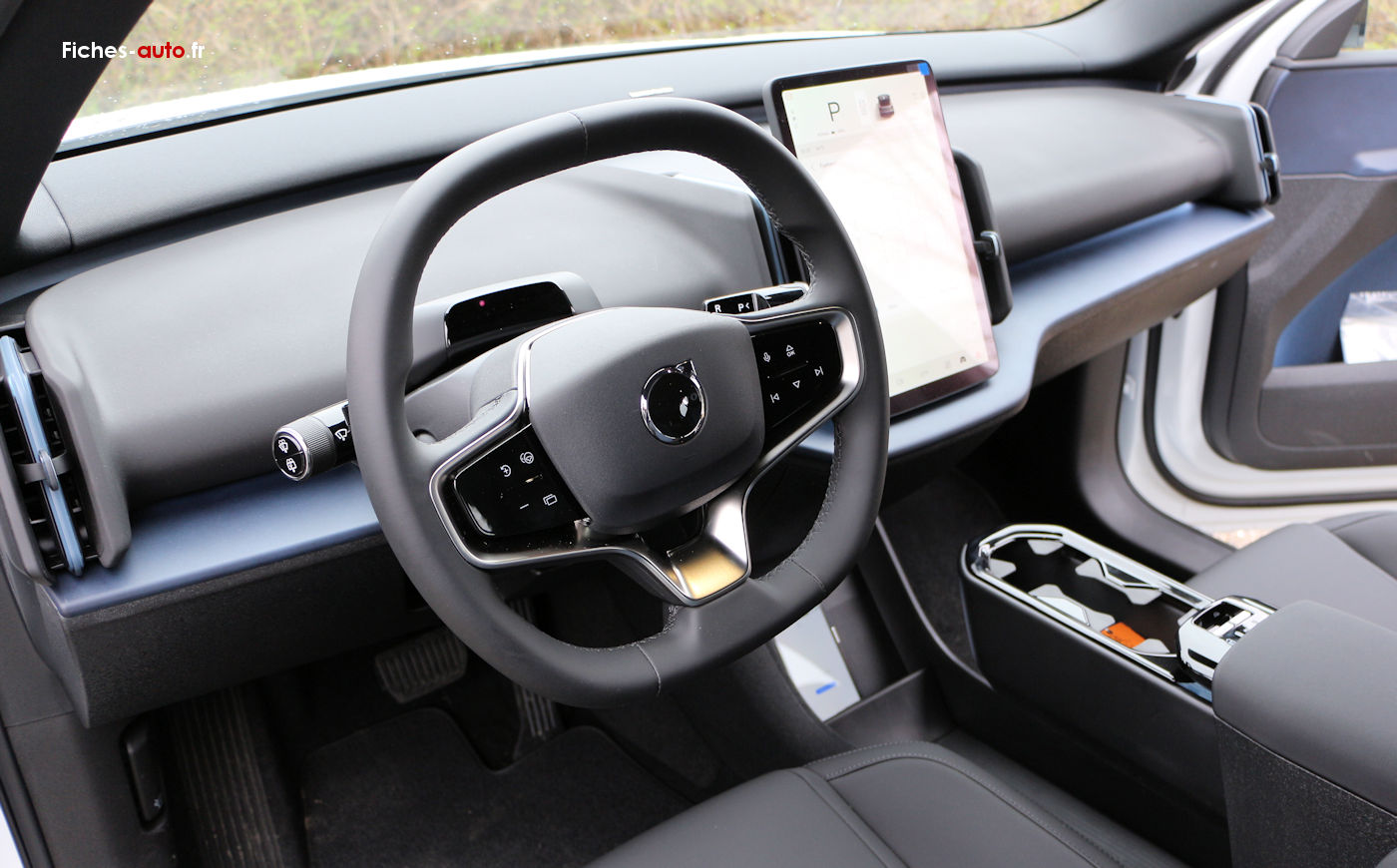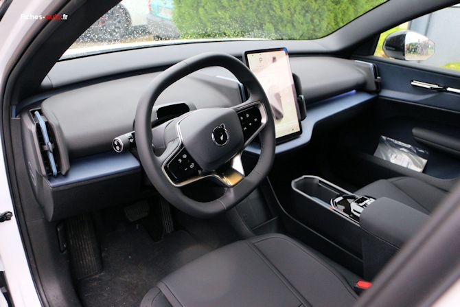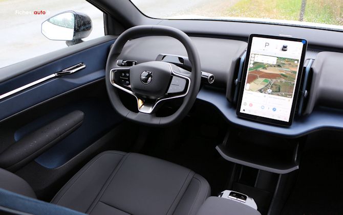 Apaisant, tendance et bien pensé, l'habitacle de l'EX30 est particulièrement en avance par rapport à bien des concurrentes, qui restent ancrées dans le passé en reproduisant les mêmes erreurs : habitacle encombré de consoles et autres protubérances qui amènent un sentiment d'engoncement et l'impossibilité de ranger quoi que ce soit ou presque. Ici c'est bel et bien Tesla qui semble avoir servi de modèle, et c'est une bonne chose car la marque américaine a particulièrement bien pensé les choses.