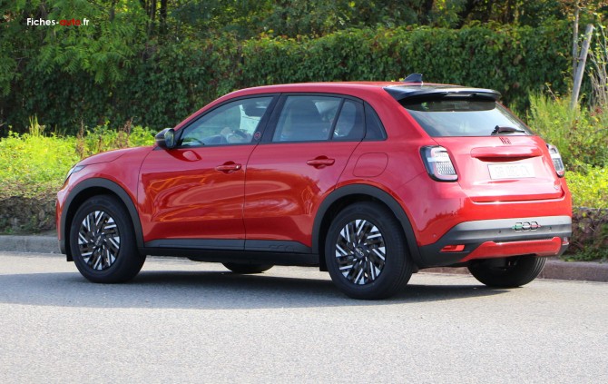 Source Fiat Mars 2024 / (Uniquement thermique sur cette entrée de gamme 600) A partir de 24 900 euros : Jantes acier 16'' avec enjoliveurs bicolores // Appuie-tête arrière // Climatisation manuelle // Ecran TFT 7'' couleur // Feux arrière à LED // Palettes de changement de rapports au volant // Volant avec commandes de l'autoradio // Montant central // Bouton d'appel d'urgence // Capteur de pluie // Freinage autonome d'urgence avec détection piétons et cyclistes // Kit anti-crevaison Fix and Go // Projecteurs full LED 'Infinity' // Radar de recul // Régulateur de vitesse // Coques de rétroviseurs noires // 4 Haut-parleurs // Système Uconnect 10,25'' // Uconnect Live