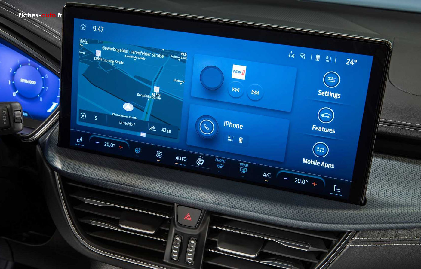 Si la présentation n'a pas bougé, du côté de l'infodivertissement la rupture est intense lors de ce restylage de début 2022. Entre le digital cockpit de série et l'arrivée d'un écran central de 13 pouces on peut dire que Ford n'a pas fait les choses à moitié !