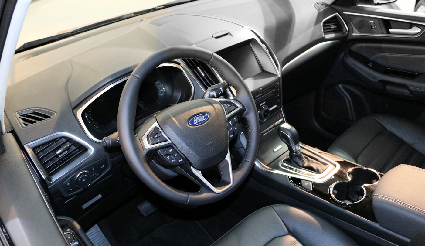 (Source Ford Septembre 2017) A partir de 33 650 euros Allumage automatique des feux et essuie-glace avant / Barres de toit noires / Feux arrière à LED / Feux de jour halogènes / Jantes alliage 17'' 10 branches / Phares antibrouillard avant et arrière / Poignées de portes couleur carrosserie / Rétroviseurs extérieurs couleur carrosserie électriques, chauffants et rabattables électriquement / Toit ouvrant panoramique électrique / 7 sièges individuels / Appui-têtes avant 4 positions / Air conditionné à régulation automatique 2 zones / Cache-bagages / Direction assistée / Eclairage de courtoisie / Miroir de surveillance des enfants / MyKey / Ordinateur de bord 4.2" / Palettes au volant (avec transmission automatique) / Pare-soleil conducteur et passager avant avec miroirs de courtoisie / Poches aumônières au dos des sièges conducteur et passager avant / Porte-lunettes / Régulateur / limiteur de vitesse / Sièges avant électriques / Sièges conducteur et passager réglables avant/arrière et en hauteur manuellement / Siège conducteur et passager avant avec réglage lombaire / Système de navigation Ford SYNC 3 avec Bluetooth® et commandes vocales avancées, écran couleur tactile 8", AppLink, Apple CarPlay, Android Auto, 2 prises USB, 8 haut-parleurs, info trafic (TMC), radio numérique DAB, accès aux points d'intérêt des Guide Michelin (Guide Rouge et Guide Vert) / Système EasyFold 2ème rangée / Système d'extinction différée des feux / Système Stop&Start / Tablettes aviation au dos des sièges conducteur et passager / Tapis de sol avant / Vitres avant et arrière électriques / Volant gainé cuir# / 7 appuie-tête réglables en hauteur / 7 ceintures de sécurité 3 points / ABS avec répartiteur électronique de freinage (EBD) / Aide au stationnement avant et arrière / Airbag genoux conducteur / Airbags frontaux conducteur et passager avant à retenue programmée / Airbags latéraux conducteur et passager avant / Airbags rideaux 1ère, 2ème et 3ème rangées / Anti-démarrage (PATS) / Assistance au freinage d'urgence (EBA) / Contrôle vectoriel de couple / ESP avec aide au démarrage en côte / Fixations ISOFIX sur les 3 sièges de la 2ème rangée / Kit de réparation pour pneumatique / Sécurité enfant avec verrouillage électrique des portes arrière / TPMS - Système de surveillance de la pression des pneus / Verrouillage centralisé à distance avec télécommande