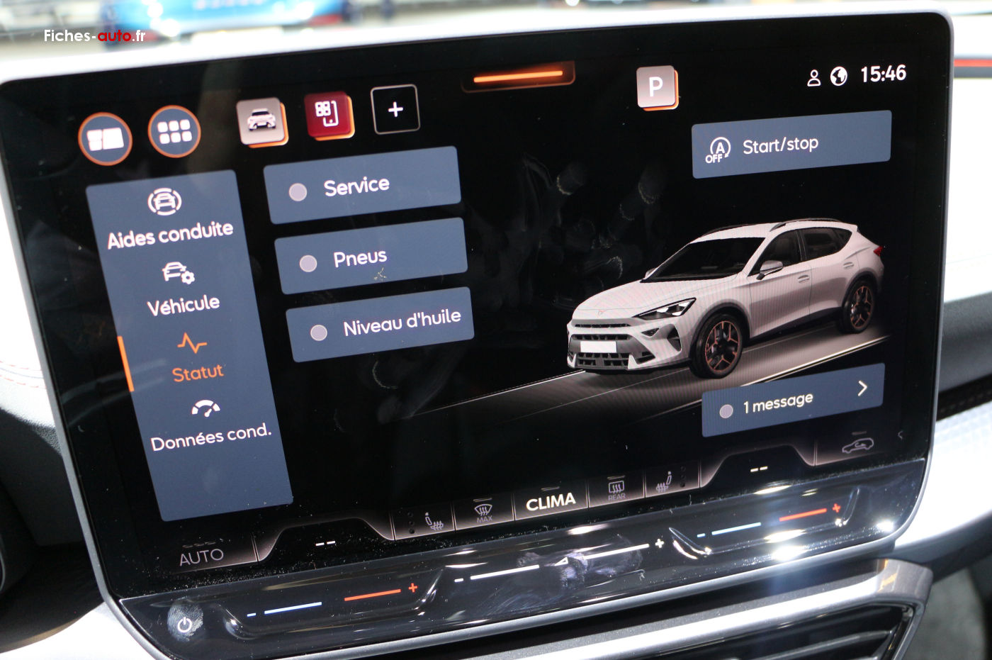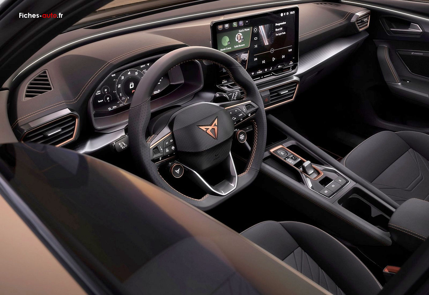 Le restylage du Formentor introduit plusieurs évolutions significatives dans son système d'infodivertissement. L'écran central tactile voit sa taille passer de 12 à 12,9 pouces, offrant un accès à un système multimédia de nouvelle génération, déjà utilisé par Volkswagen et Skoda. La barre supérieure de l'écran comprend désormais des raccourcis configurables, tandis que la barre inférieure est dédiée aux contrôles de la climatisation. Le bandeau sensitif situé en dessous, utilisé pour régler la température et le volume audio, bénéficie d'un rétroéclairage pour une meilleure visibilité.