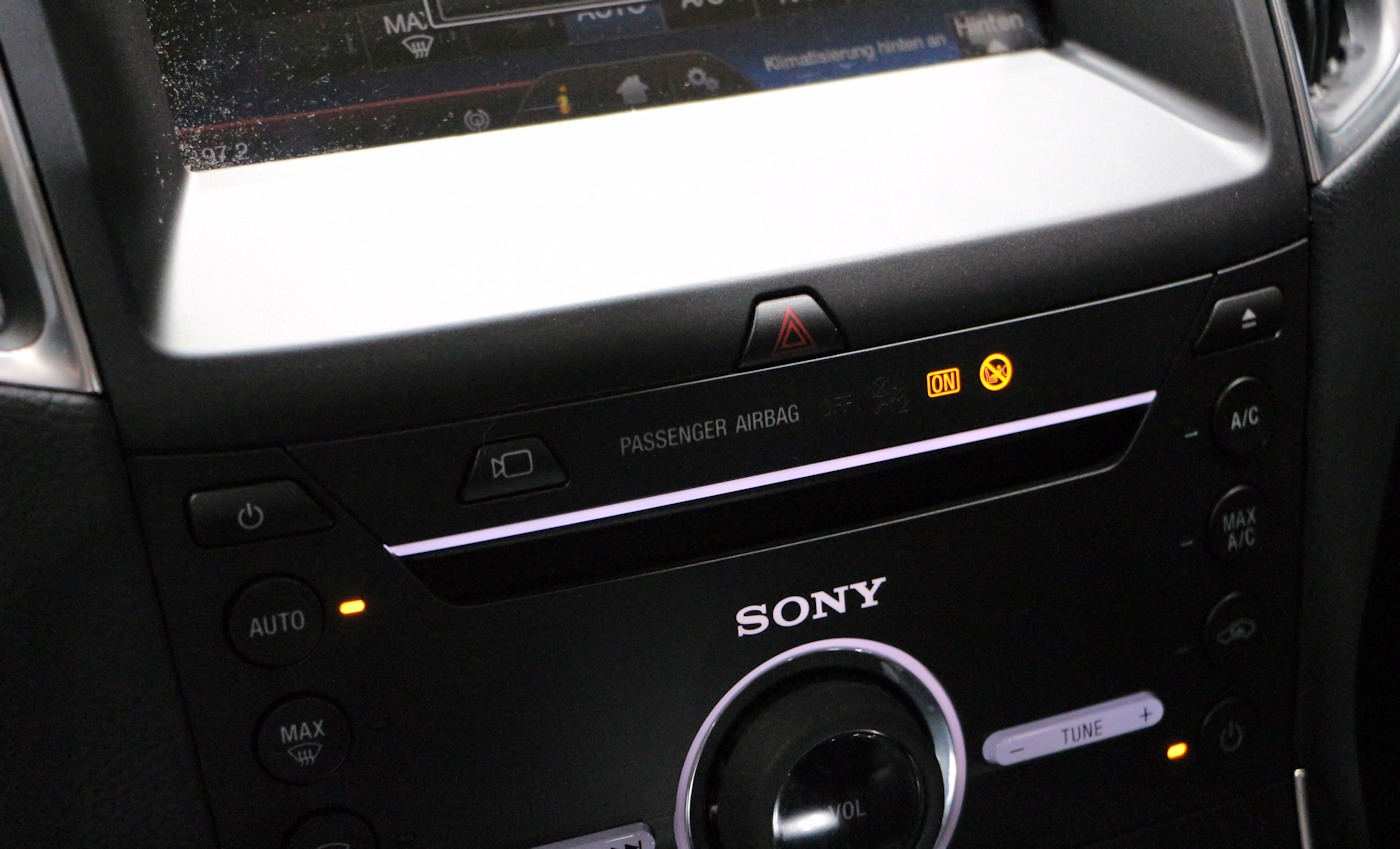 Détail par rapport au S-Max, les deux dernières places sont ici de série et elles sont motorisées par un moteur électrique. Que ce soit pour les rabattre ou les relever cela se fait par un bouton (il n'y a donc plus les sangles sur le dossier des 6ème et 7ème places).