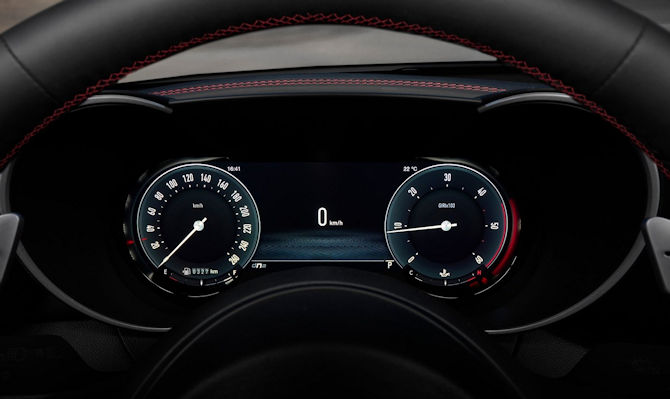 Concernant l'écran multimédia, il est intégré de manière originale et plutôt maligne. En effet, la présentation reste inchangée même si vous avez opté pour le petit écran des finitions inférieures (6.5 pouces au lieu de 8.8 pouces sur les hauts de gamme). Il se noie dans la masse noire en plexiglas sans qu'on en voit précisément le contour, cela amène au passage une originalité et permet surtout de ne pas appauvrir l'habitacle comme cela est le cas dans les Allemandes (quand on a le petit écran ça se voit nettement ...).