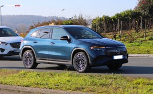 Le résultat est un châssis qui tend un peu plus vers des proportions de karting, à savoir un empattement quasi identique couplé à des voies élargies afin qu'on se rapproche plus du carré que du rectangle (si on devait relier les roues avec des segments). Cette modification a alors tendance à rendre le GLA plus directionnel que par le passé quitte à perdre un peu en stabilité à haute vitesse quand on effleure le volant. Niveau trains roulants on est sur du multibras de série à l'arrière et non pas du semi-rigide comme c'est le cas sur la Classe A d'entrée de gamme.