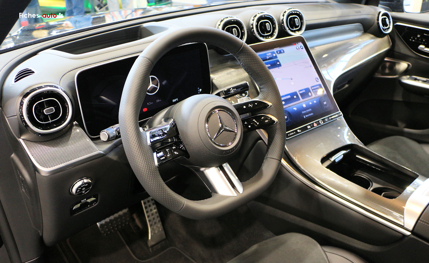 Le GLC Coupé est bien équipé en matière dinfodivertissement, avec un combiné dinstrumentation numérique de 12,3 pouces et un écran central vertical de 11,9 pouces. Si cette orientation en portrait est efficace pour la navigation et certaines fonctions, elle peut se révéler moins pratique pour dautres, comme la lecture de vidéos. Les écran orientés paysage semblent d'ailleurs devenir la norme.