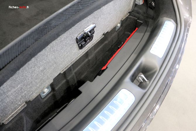 Le coffre se révèle correct (mais sans plus) sur les versions thermiques avec ses 545 litres annoncés. Cependant, la disposition de lespace est un peu déroutante. En effet, la partie sous le plancher, bien quample, est peu pratique en raison de sa forme peu régulière, rendue encore moins fonctionnelle par la présence dune structure en polystyrène. De plus, le plancher du coffre est fixe, pas de possibilité de le mettre plus bas comme on le voit souvent à notre époque. Résultat : une capacité réduite à 375 litres au-dessus du plancher, complétée par 170 litres en dessous. En version hybride, cette capacité chute à 390 litres au total, avec seulement 20 litres sous le plancher, un souci qui montre à quel point les mécaniques hybrides sont encombrantes (moteur thermique + moteur électrique + batterie).