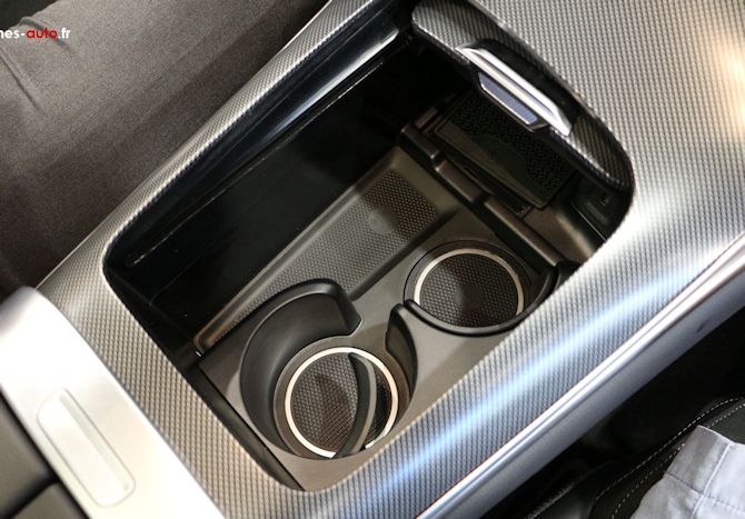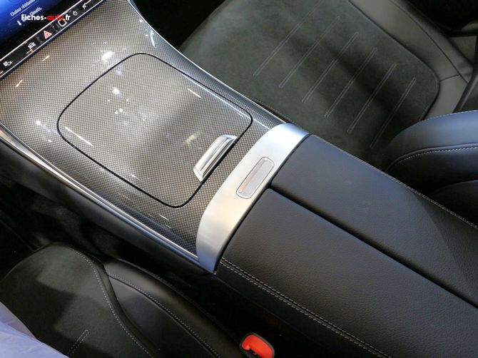 En termes de rangements, le GLC offre une prestation correcte, mais sans vraiment se démarquer. La console centrale propose une ouverture avec des porte-gobelets et un espace pour la recharge par induction, mais la place y est un peu limitée et le téléphone n'est pas idéalement positionné pour le consulter de temps à autres. Derrière, l'accoudoir central contribue à augmenter la capacité de rangement, mais son accès soit légèrement moins aisé car très reculé (comme tout accoudoir, car il doit tomber sous le coude !). Ca reste assez fonctionnel mais sans toutefois exceller comme on le voit de plus en plus sur les voitures modernes, qui pour beaucoup offrent de plsu en plus d'espaces pratiques (l'électrification aide aussi en nécessitant moins d'organes mécaniques).