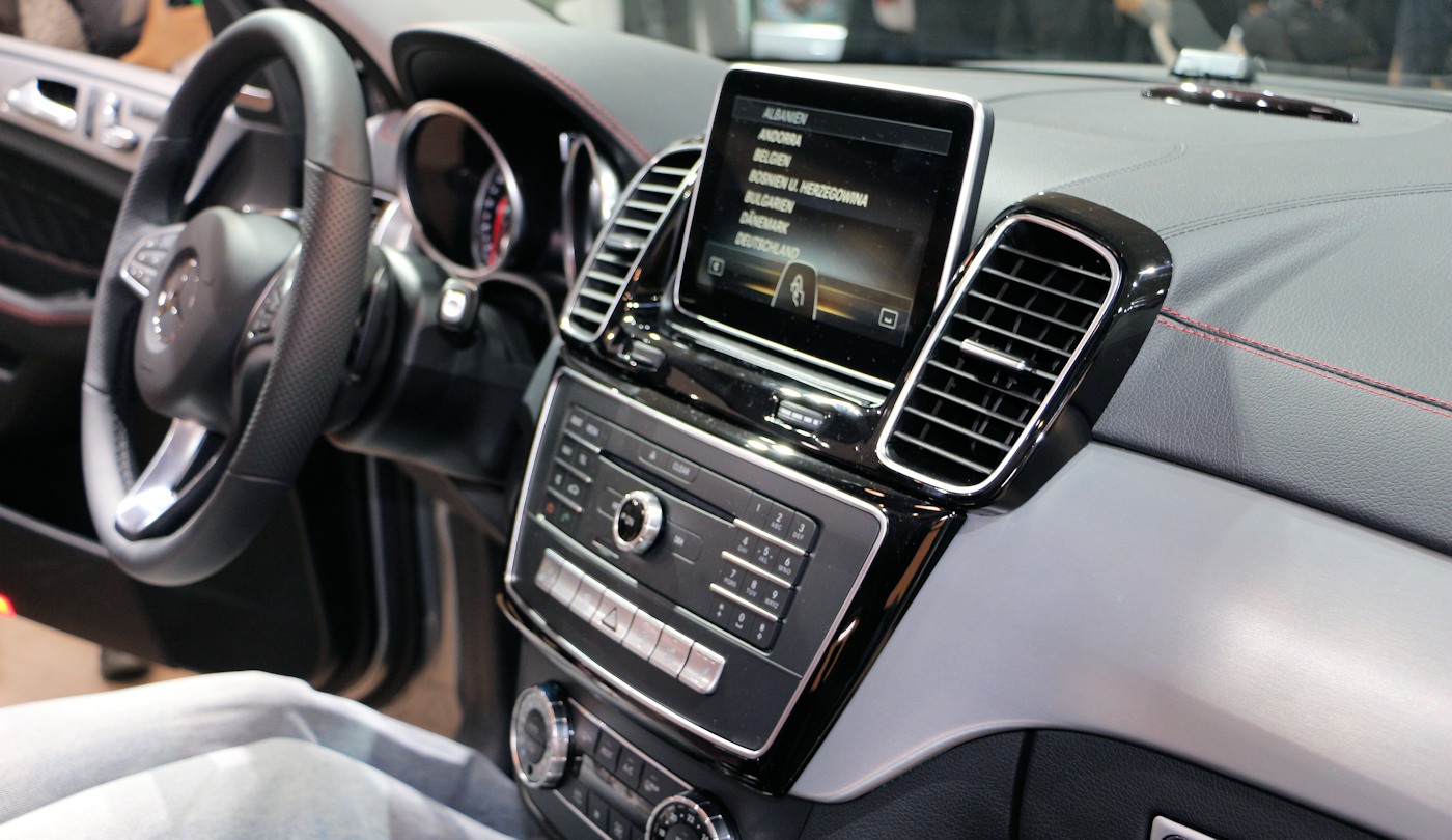Sans être à la pointe de son époque, le GLE a toutefois revu et corrigé la planche de bord du ML. L'écran est devenu plus grand et il s'intègre désormais comme le reste de la gamme, à savoir accroché au dessus de le console centrale façon tablette tactile (qui ne l'est pas d'ailleurs). C'est donc plutôt bien réalisé malgré que l'ensemble manque peut-être d'un peu de modernisme (surtout au niveau de la console centrale où se situent tous les boutons).