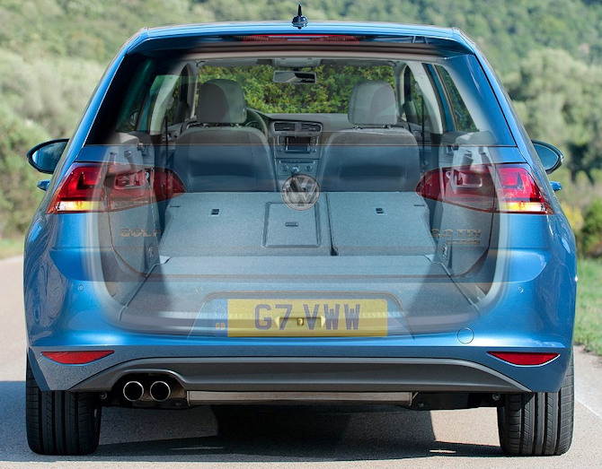 Coffre du break : 605 litres. Si les générations précédentes de Golf avaient une allure plutôt moyenne, de la 3 à la 6 (avec les 5 et 6 ayant exactement le même arrière ...), et bien Volkswagen semble avoir motivé ses designers pour que cela change une bonne fois pour toute. Et le pari est largement réussi puisque l'arrière est désormais plutôt séduisant et bien proportionné au niveau des blocs optiques. Et le pire de tout est qu'elle a réussi à gagner 100 litres de contenance. Preuve encore une fois que praticité peut rimer avec beauté ... Notons au passage qu'elle ne s'appelle plus Golf SW mais Golf Variant.